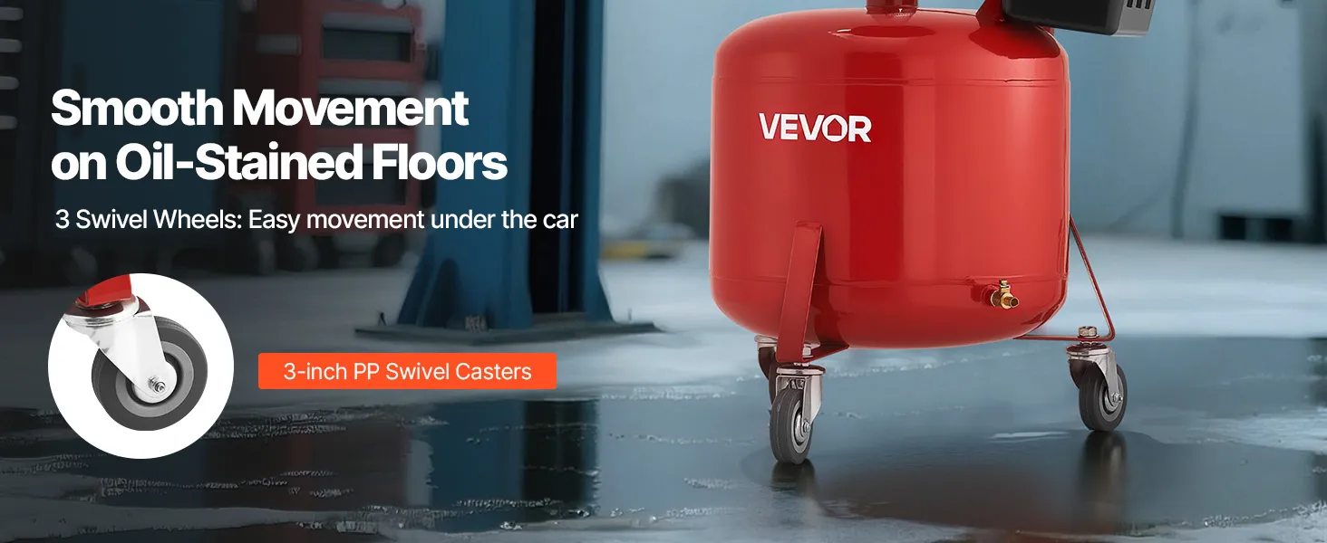 Viegla pārvietošana: Aprīkota ar vairāku riteņu piedziņu un 7,6 centimetru grozāmiem riteņiem, šī pārvietojamā eļļas noteces tvertne nodrošina vienmērīgu kustību dažādās vidēs – gan auto remontdarbnīcās, gan mājas garāžās.
