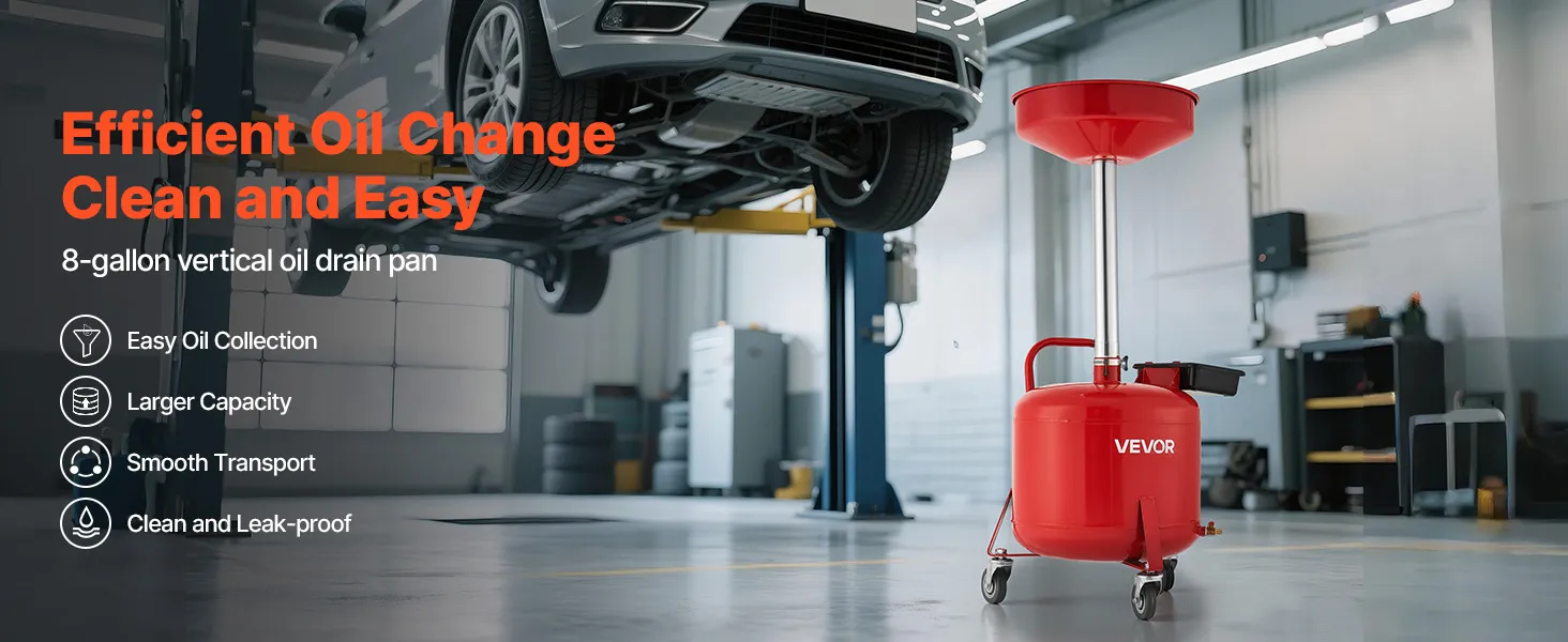 Liela ietilpība mājsaimniecībai: 30 litru eļļas noteces tvertne nodrošina ātru un efektīvu eļļas maiņu, izmantojot gravitācijas noteci, lai samazinātu noplūdes. Ideāli piemērota biežām un nelielām eļļas maiņām automašīnām, apvidus auto vai pikapiem.