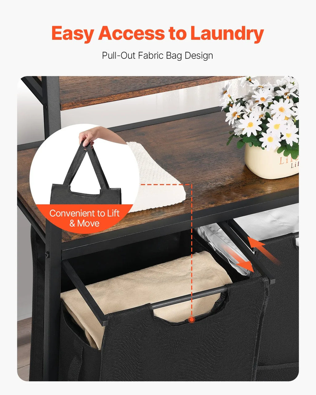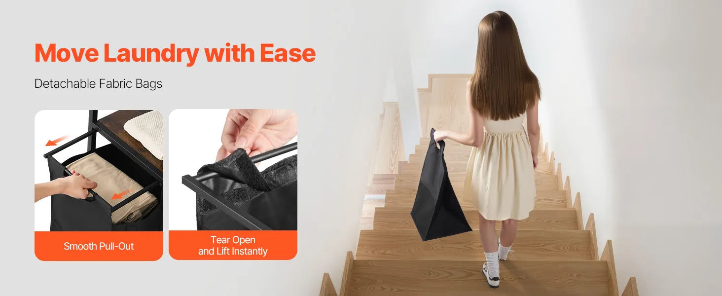 Ērta piekļuve: konstrukcija ar izvelkamo un roktura dizainu ļauj ērti izņemt drēbes vai izņemt visu maisu pārvadāšanai. Nav jāņem katrs priekšmets atsevišķi — vienkārši ielieciet visu maisu veļas mašīnā ātrākai mazgāšanai