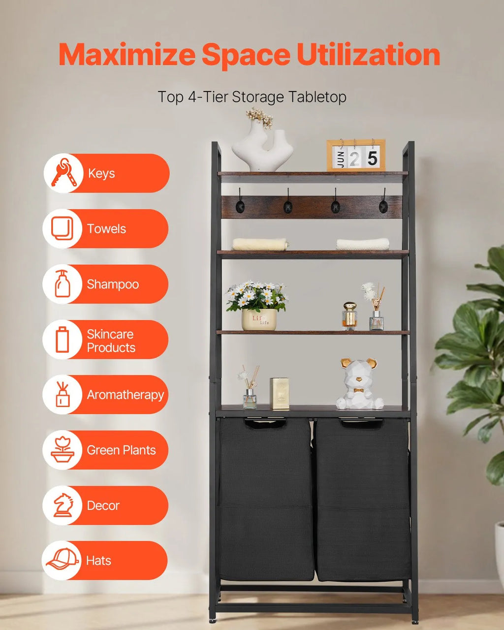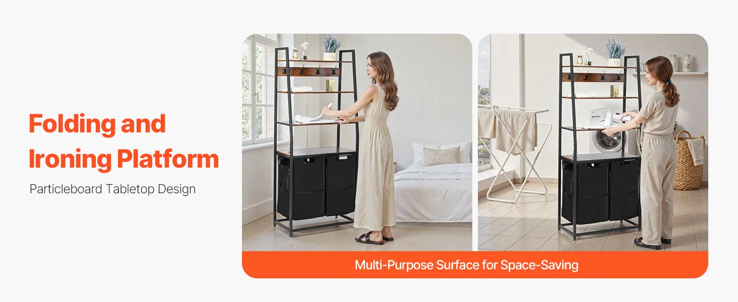 Daudzfunkcionāls dizains: veļas šķirotāja augšpusē atrodas 12 mm bieza skaidu plātnes virsma, kas iztur līdz 30 kg. To var izmantot apģērba gludināšanai, aizsargāt lietas no putekļiem vai kā uzglabāšanas vietu veļas piederumiem un ikdienas priekšmetiem