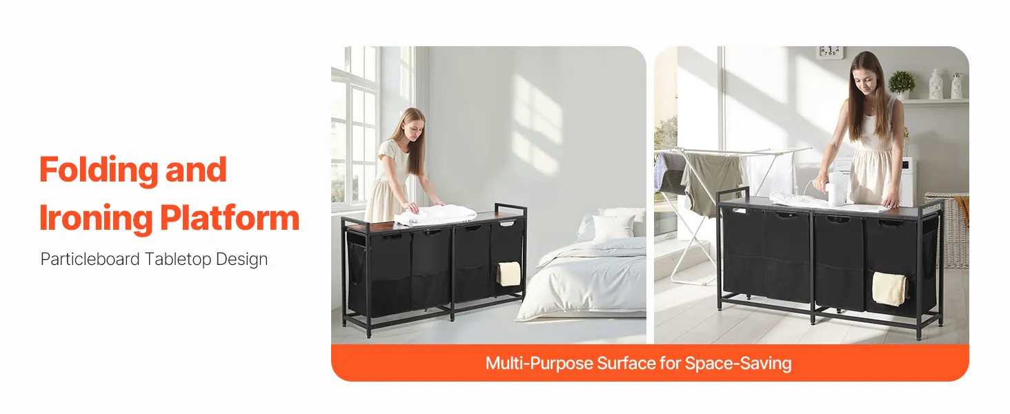 Daudzfunkcionāls dizains: veļas šķirotāja augšpusē atrodas 12 mm bieza skaidu plātnes virsma, kas iztur līdz 30 kg. Tā var kalpot kā vieta apģērba gludināšanai, aizsargāt lietas no putekļiem vai kā uzglabāšanas virsma veļas piederumiem, ikdienas priekšmetiem vai atslēgām