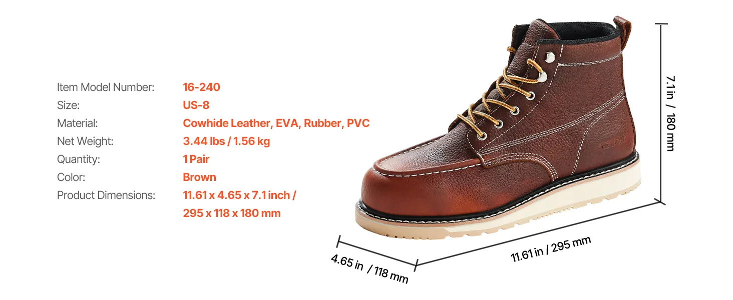 Dažādi izmēru varianti: Pieejami ASV izmēri 8–13. Pēc pēdas garuma un platuma mērījuma var viegli izvēlēties atbilstošu izmēru. Piemēroti būvniecības un cita fiziska darba veikšanai.