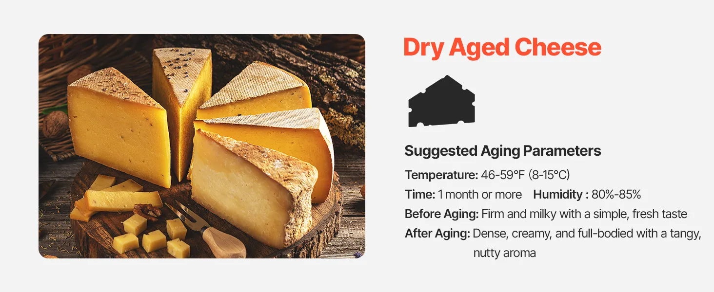 Precīza temperatūras un mitruma kontrole: ledusskapis piedāvā regulējamu temperatūru 1–25 °C un mitruma līmeni 60–85%. Ar digitālo vadības paneli viegli pielāgojiet vidi liellopa, cūkgaļas, jēra, siera un citu produktu nogatavināšanai.