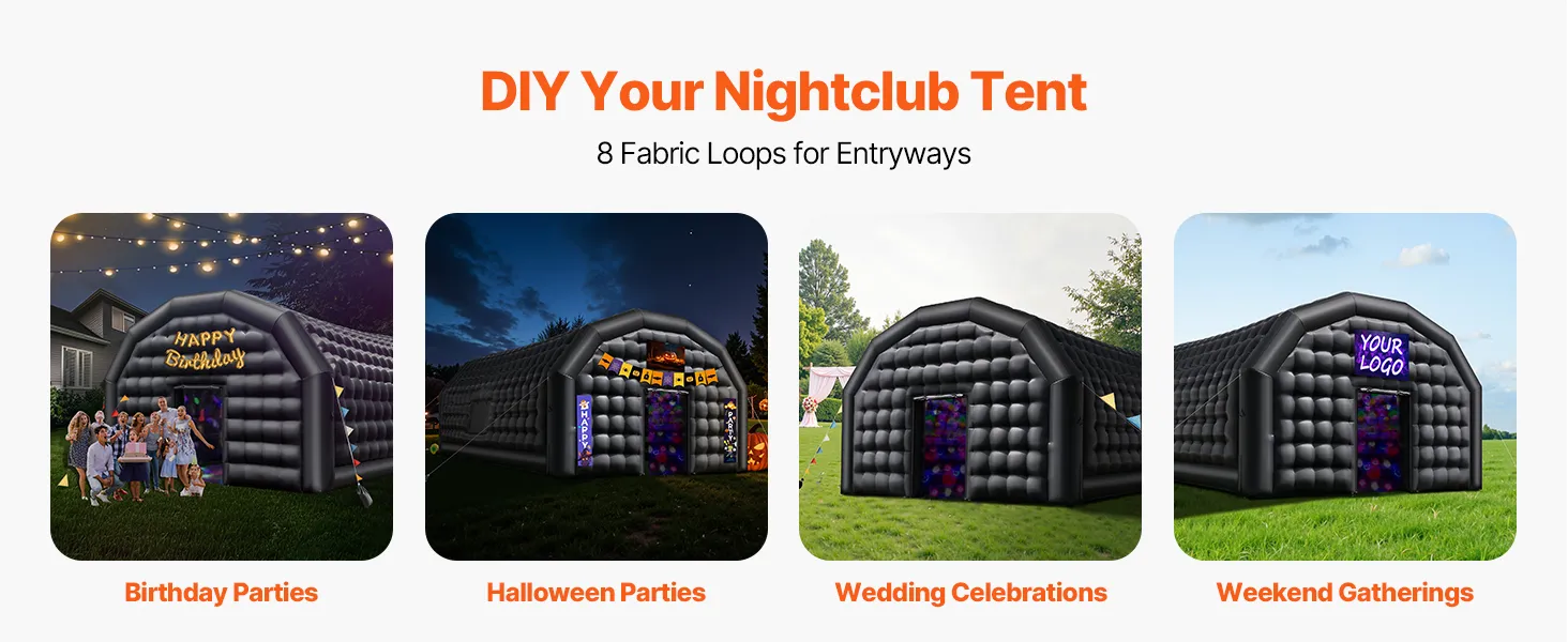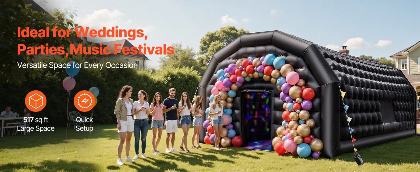 Plaša iekšējā telpa: Izbaudi 48 m² atvērtas vietas — šī uzpūšamā ballīšu telts ir ideāli piemērota dzimšanas dienām, kāzām, ģimenes svinībām un citiem pasākumiem.