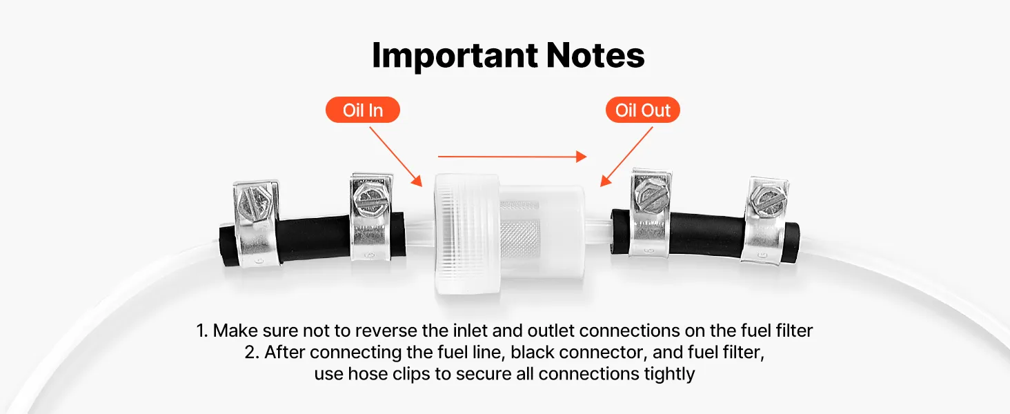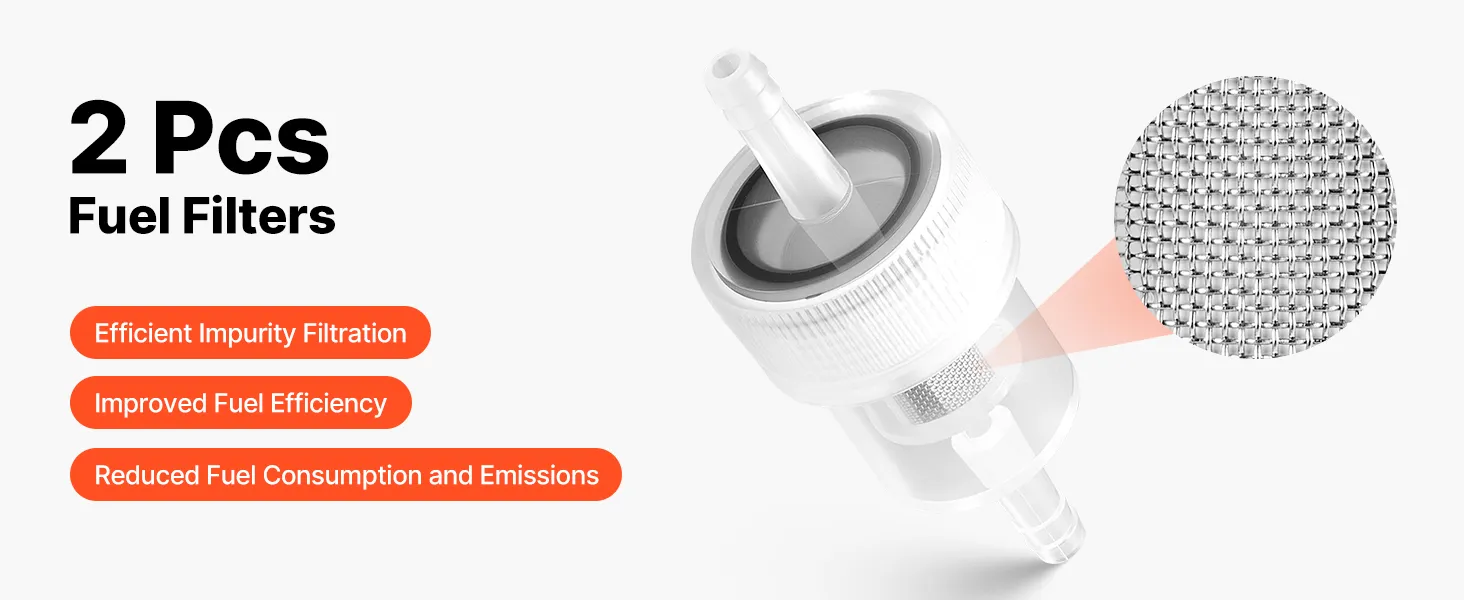 Iekļauti 2 degvielas filtri ar smalka sieta konstrukciju, kas uztver netīrumus un piemaisījumus. Tie nodrošina uzlabotu degvielas padevi un sistēmas efektivitāti, neietekmējot plūsmas stabilitāti.
