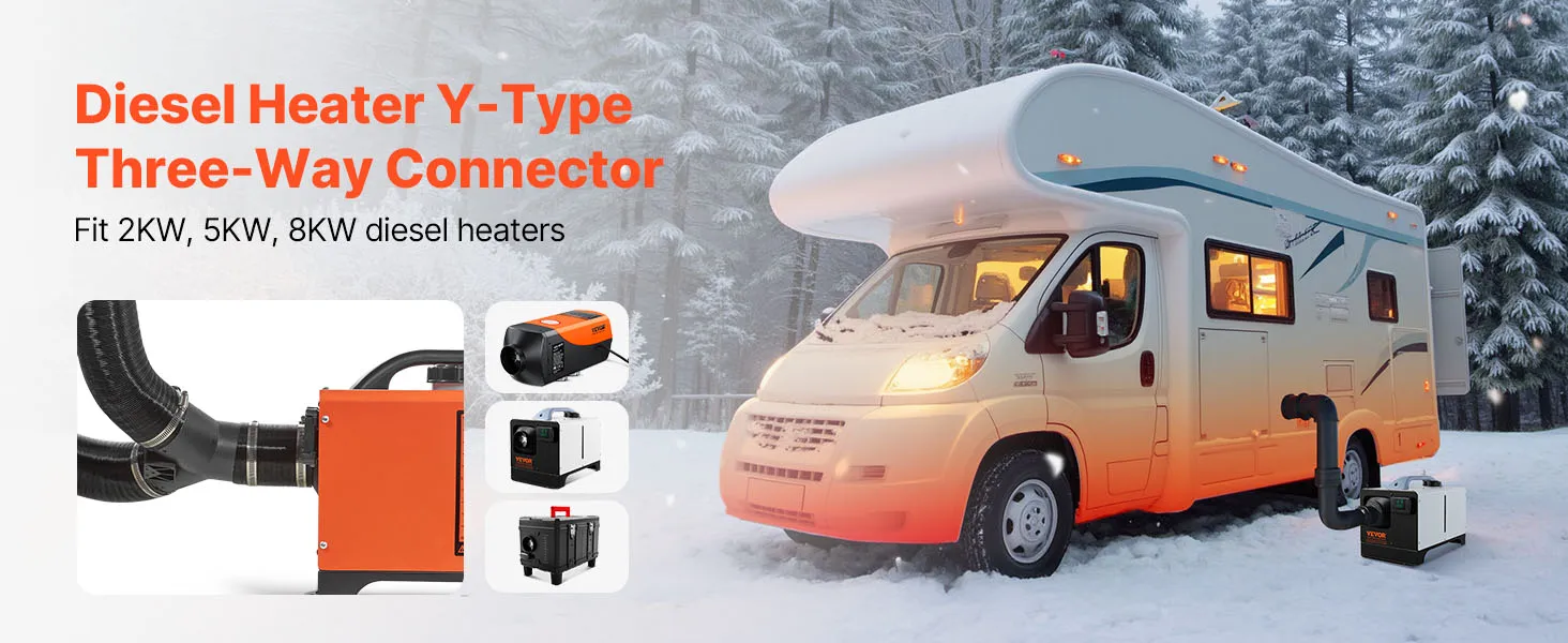 Plaša saderība: VEVOR Y veida atzara savienotājs ir uzticama rezerves daļa lielākajai daļai 2 kW, 5 kW un 8 kW dīzeļsildītāju. Tas nodrošina efektīvu gaisa sadali un ir piemērots dažādām apkures sistēmām. Pirms iegādes, lūdzu, pārliecinieties par saderību ar savu modeli.