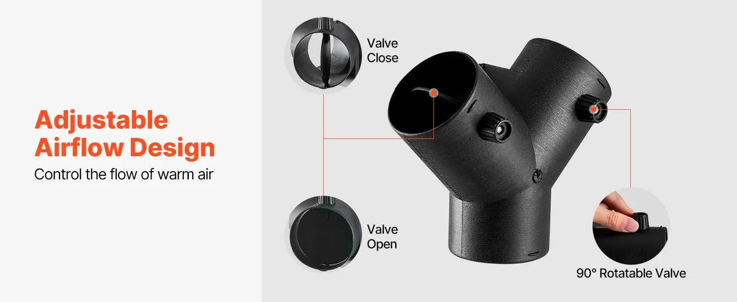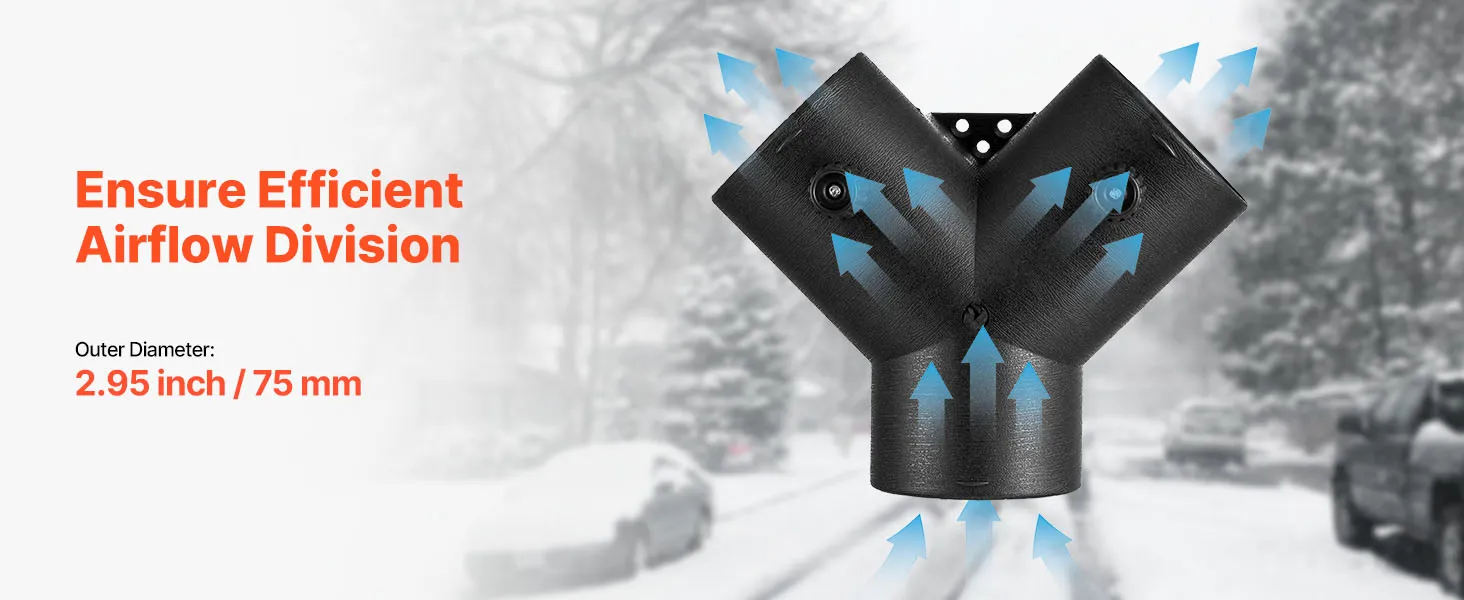 Viegla uzstādīšana: Y veida savienotājs ir izstrādāts ērtai un ātrai pievienošanai pie sildītāja un gaisa vada. Tas palīdz nodrošināt efektīvu siltā gaisa padevi ar vienkāršu montāžu.