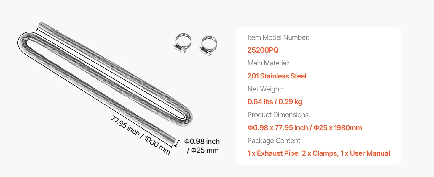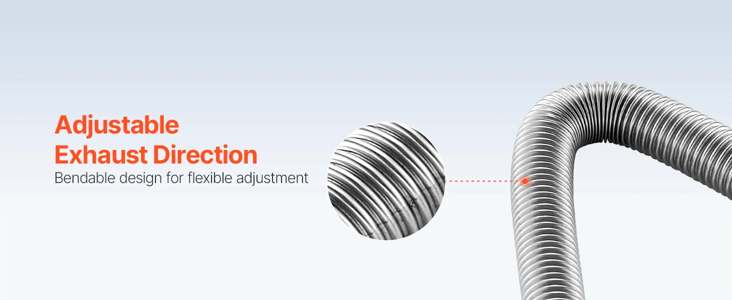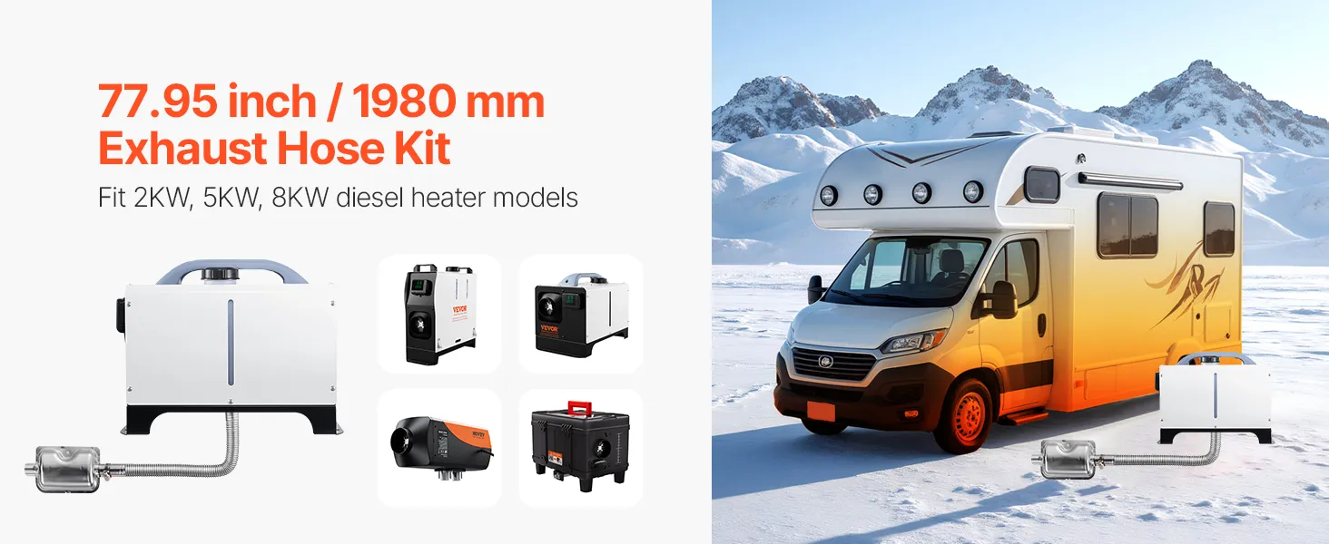 VEVOR stāvvietas dīzeļsildītāja izplūdes šļūtenei ir elastīga struktūra, kas pielāgojas dažādiem uzstādīšanas leņķiem. Tā saglabā izturību un nodrošina efektīvu izplūdes novadi, padarot to par praktisku izvēli sildītāju modernizācijai vai nomaiņai.
