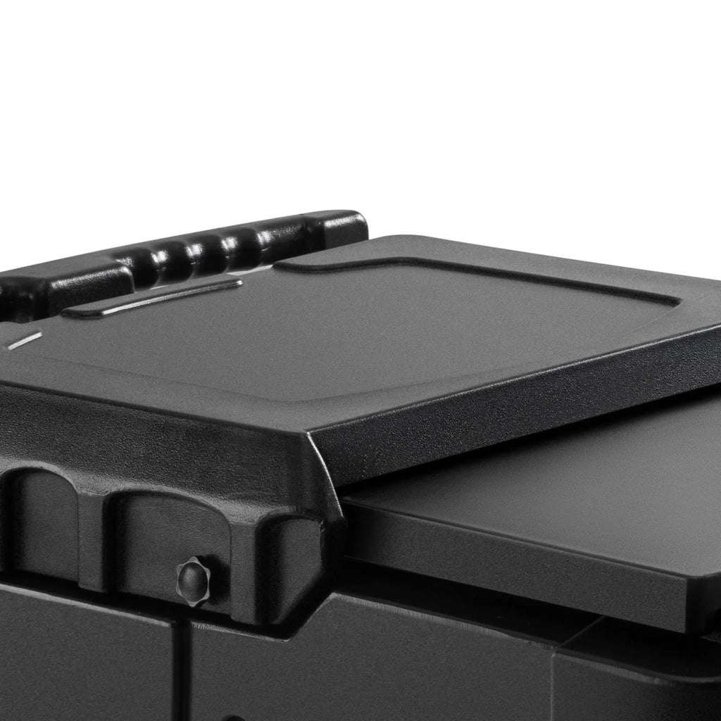 Ērts bīdāmais vāks: ar lielisku izolāciju un aizsardzību pret putekļiem vāks viegli atveras un aizveras, saglabājot aukstumu iekšpusē un pasargājot ledu no netīrumiem.