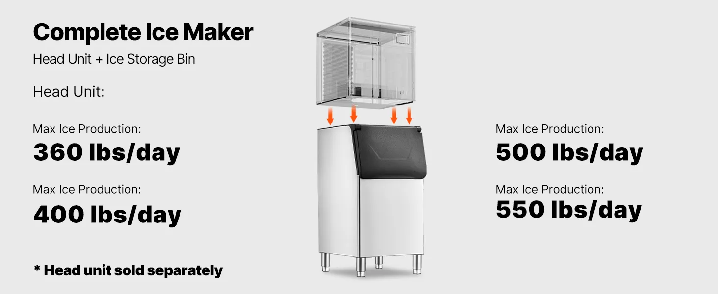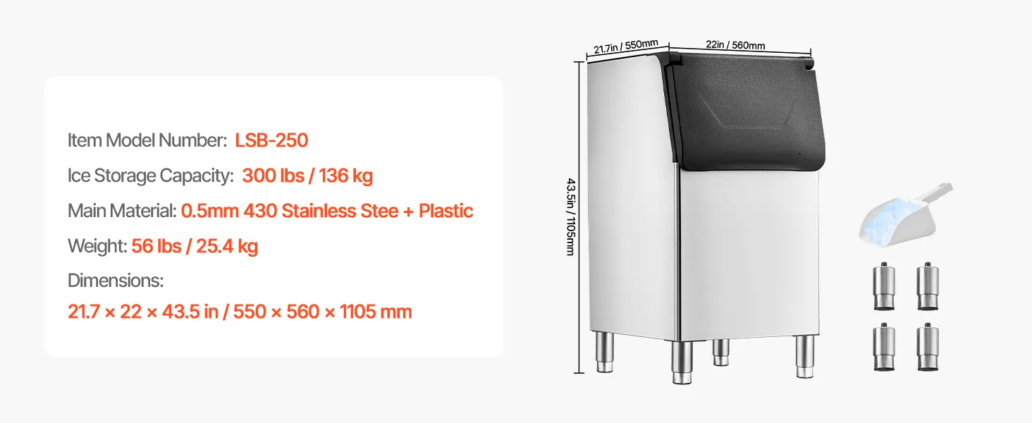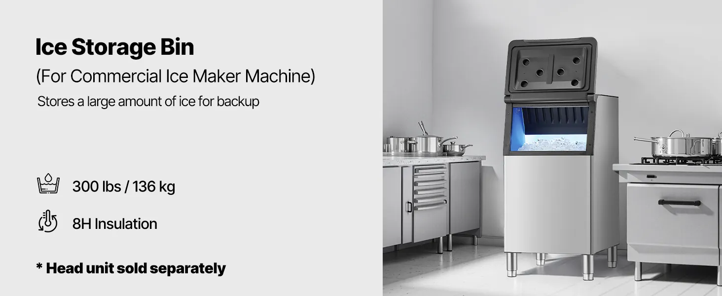 Liela ledus ietilpība: komerciālais ledus uzglabāšanas konteiners spēj uzglabāt līdz 136 kg ledus, nodrošinot lielu ledus rezervi jūsu vajadzībām