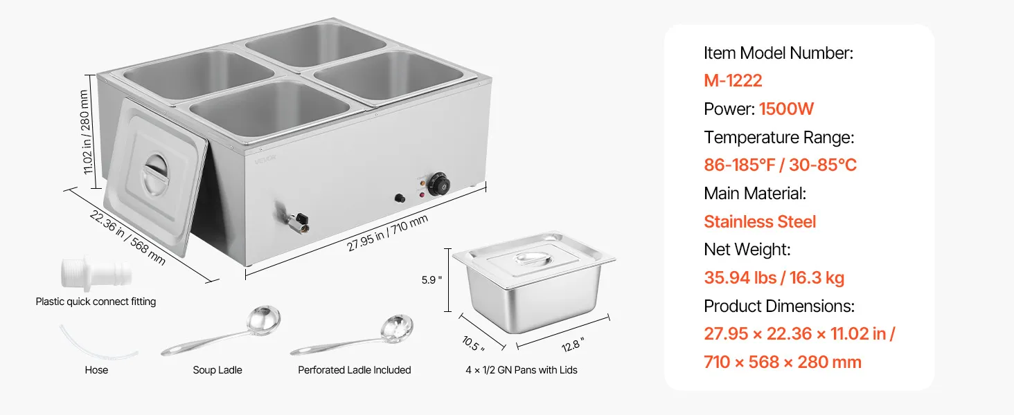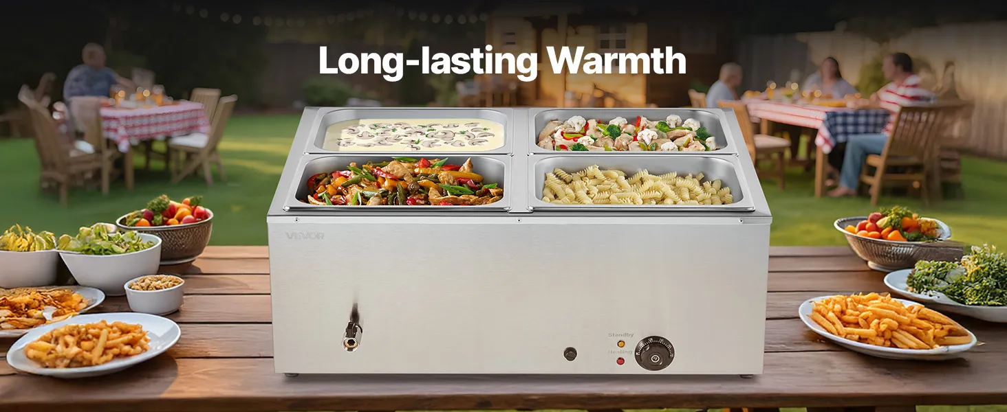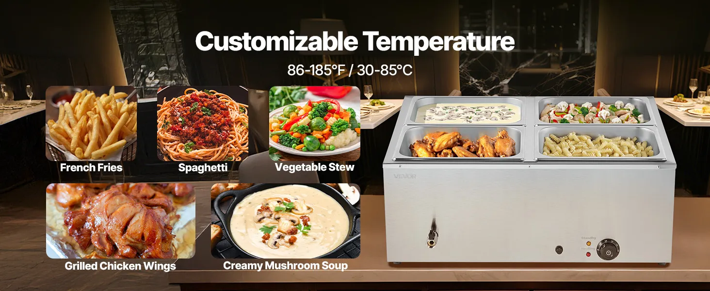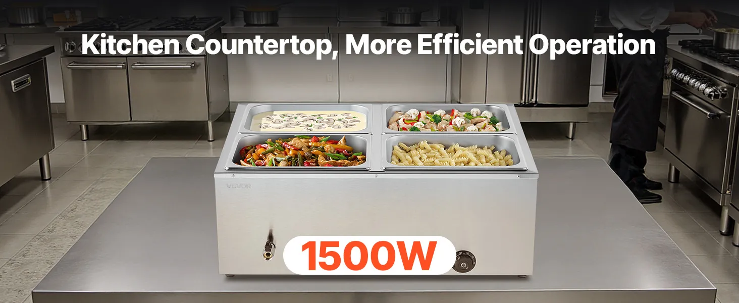 Izturīga konstrukcija: izgatavots no nerūsējošā tērauda, šis elektriskais pārtikas sildītājs nodrošina stabilu un uzticamu darbību. U-veida sildīšanas caurule vienmērīgi uzsilda ēdienu un saglabā efektivitāti ilgstošā lietošanā.