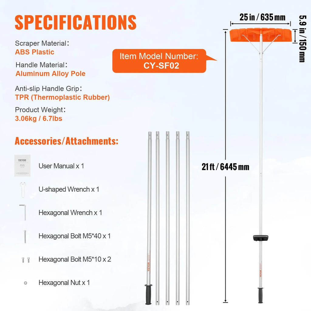 63,5 cm liels asmens: platais sniega jumta lāpstas asmens nodrošina ātrāku sniega tīrīšanu no jumta, īpaši pie lielas sniega segas. Tas ļauj vienā piegājienā notīrīt vairāk sniega, samazinot skrāpēšanas reižu skaitu un atvieglojot darbu. Vairs nekādu raižu par sniega uzkrāšanos ziemā.