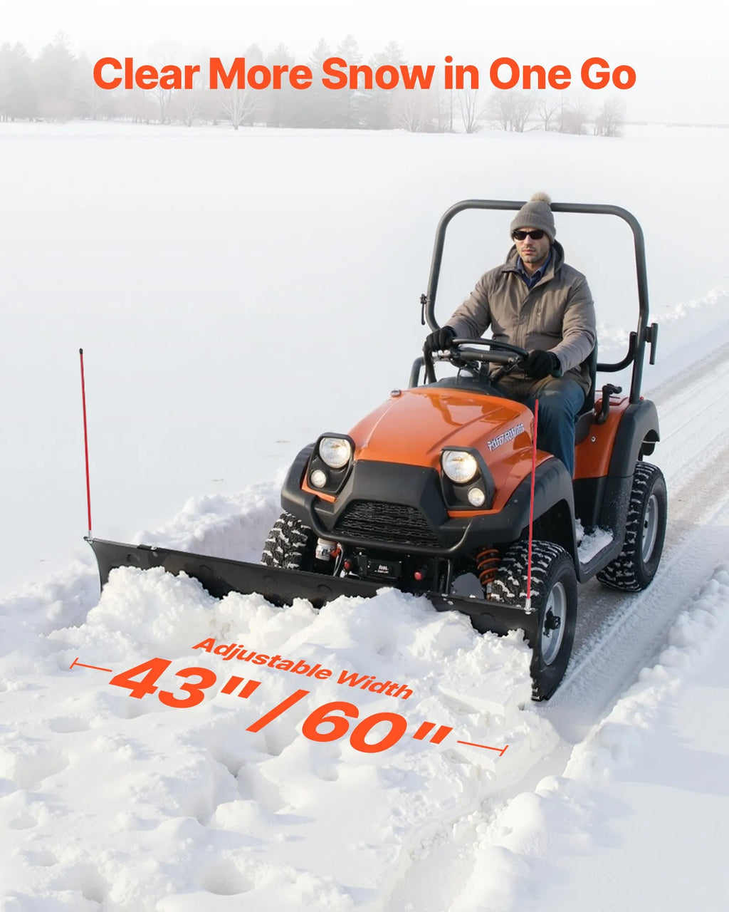 Mūsu sniega lāpsta ir izstrādāta ar plašu transportlīdzekļu saderību – daudzu slotu balsts nodrošina 3 stiprināšanas iespējas, kas piemērotas lielākajai daļai ATV un UTV modeļu. Divi regulējami platuma iestatījumi 109 cm / 152 cm kopā ar 5 pozīciju leņķa regulēšanu (±24,88°) un 4 līmeņu augstuma regulēšanu ļauj pielāgoties dažādiem apstākļiem.Atstarojošie marķieri nakts darbiem