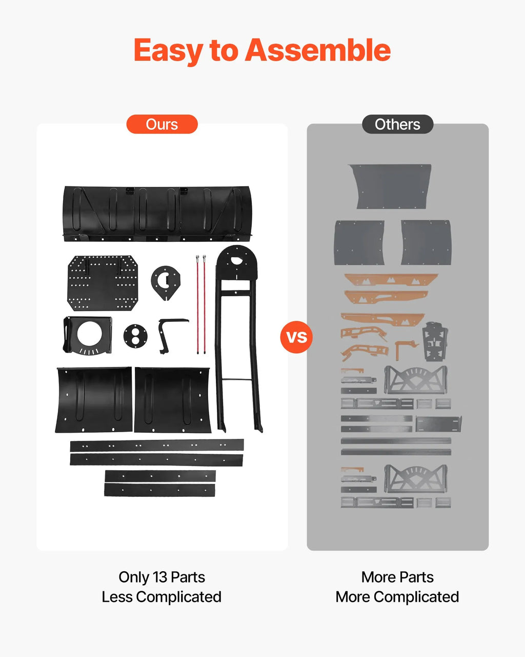 Universāla saderība: sniega lāpstas komplektam ir uzlabots daudzu slotu stiprinājuma balsts ar 3 uzstādīšanas iespējām, piemērots lielākajai daļai ATV un UTV modeļu. Nodrošina ērtu un elastīgu lietošanu plašam transportlīdzekļu klāstam.