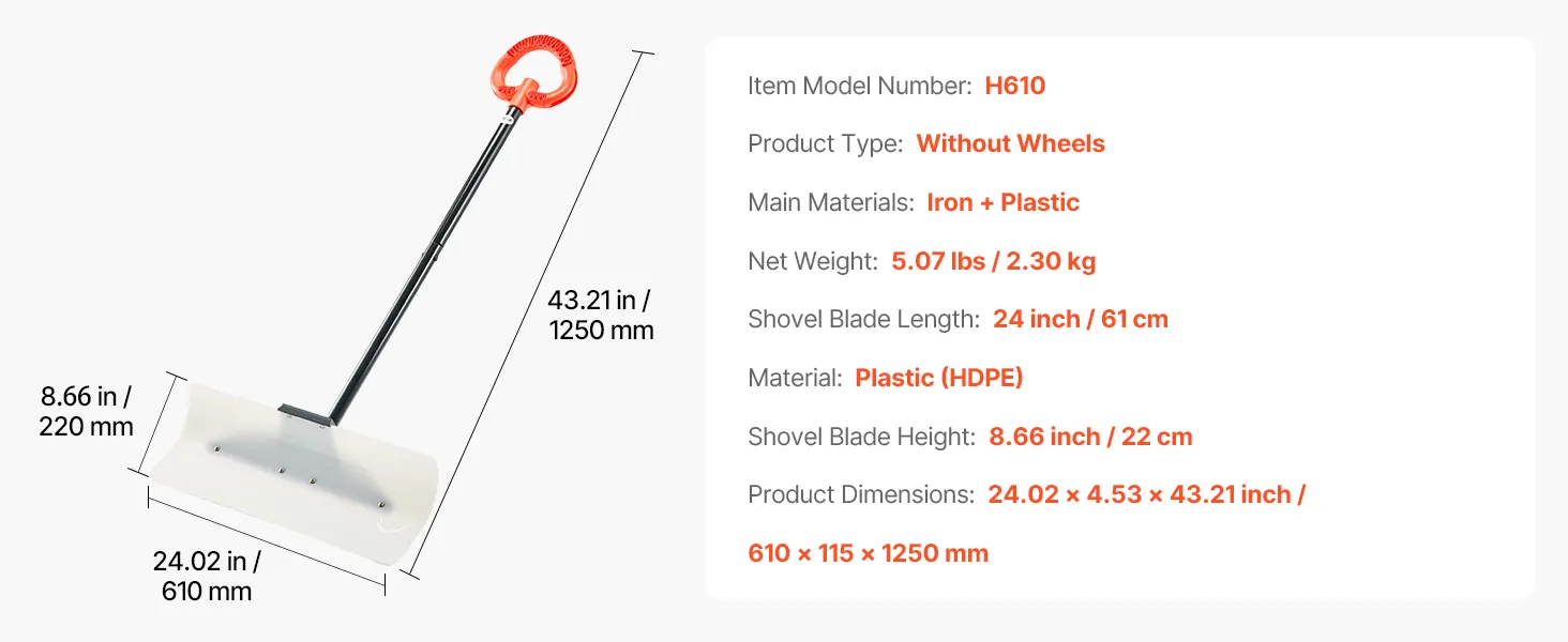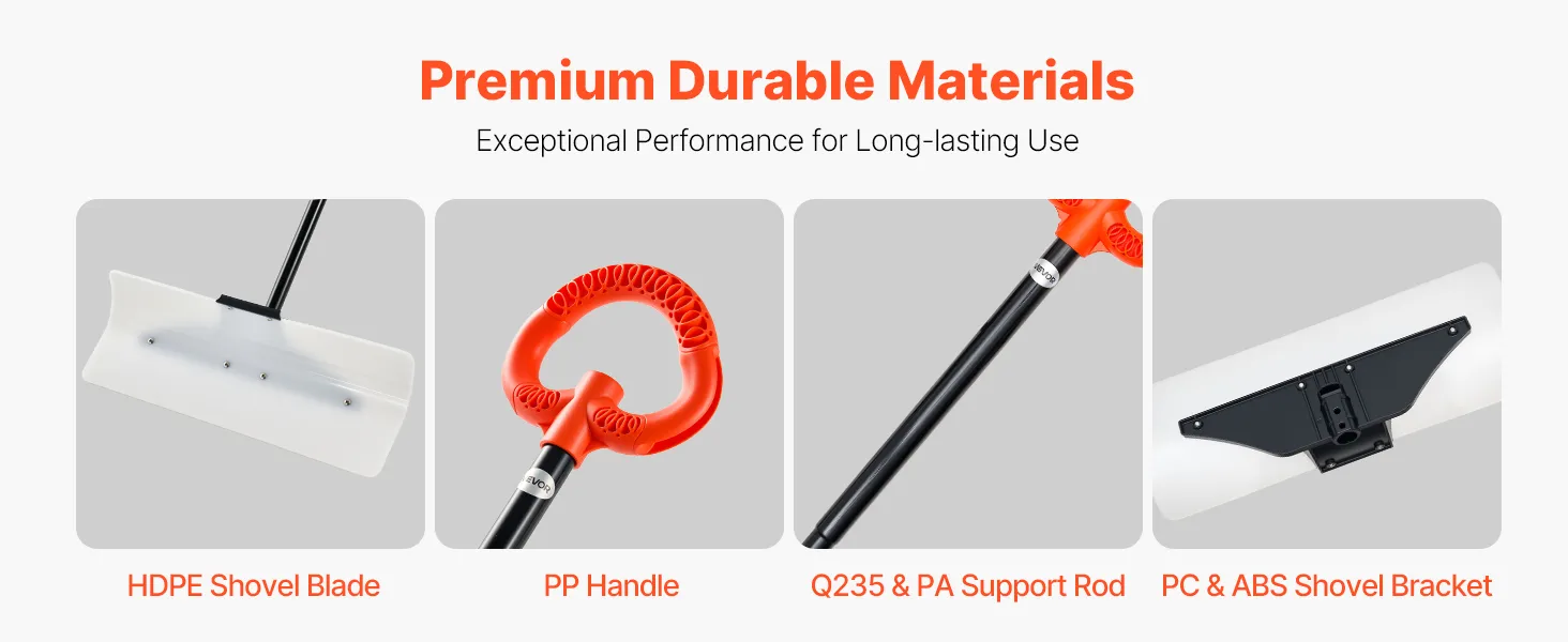 Izturīga un ilgmūžīga: Izgatavota no augstas kvalitātes HDPE materiāla, sniega lāpsta ir īpaši nodilumizturīga, pasargāta no bojājumiem un deformācijas. Gludā virsma samazina sniega pielipšanu, padarot tīrīšanu vienkāršāku.