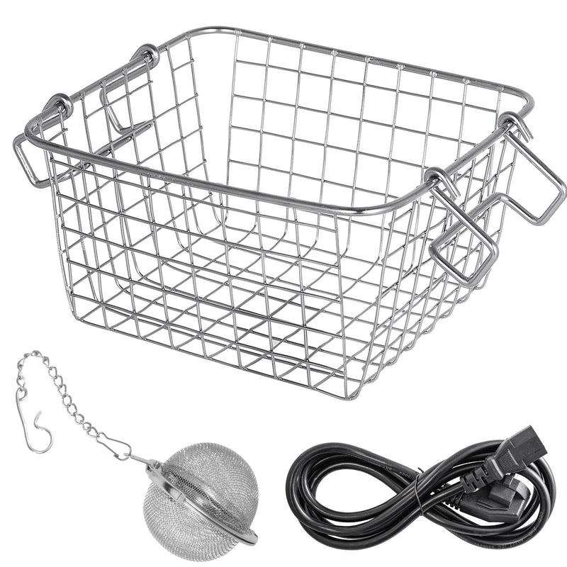 【Augstvērtīgs SUS304 materiāls】 – Tvertnes tilpums: 1,8–2 L; ultraskaņas jauda: 60 W. Šī ultraskaņas tīrīšanas iekārta ir izgatavota no izturīga 304. markas nerūsējošā tērauda, kas novērš ūdens noplūdi un nodrošina ilgmūžību. Komplektā iekļauts arī grozs, kas mazina asu priekšmetu sadursmes ar tvertnes sienām. Maksimālais tīrāmā priekšmeta izmērs: 100 × 90 × 70 mm.
