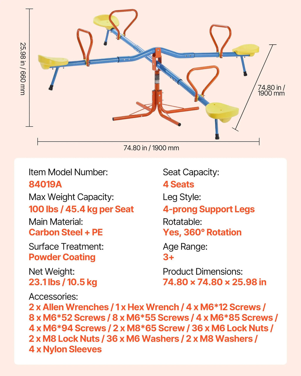 Izturīgs un laikapstākļiem noturīgs: Izgatavots no oglekļa tērauda ar pulverkrāsas pārklājumu, balansieris iztur līdz 49,9 kg slodzi uz vienu sēdvietu. Tas ir ūdensizturīgs un noturīgs pret rūsu, nodrošinot ilgu kalpošanas laiku jebkuros laikapstākļos.
