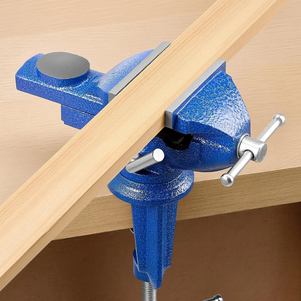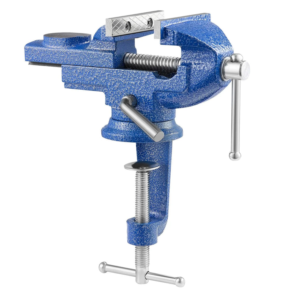VEVOR darbagalda skrūvspīles 76,2 mm ar 360° rotējošu pamatni, ātrās fiksācijas mehānismu un paaugstinātu čuguna korpusu, piemērotas kokapstrādei, metālapstrādei, urbšanai un griešanai