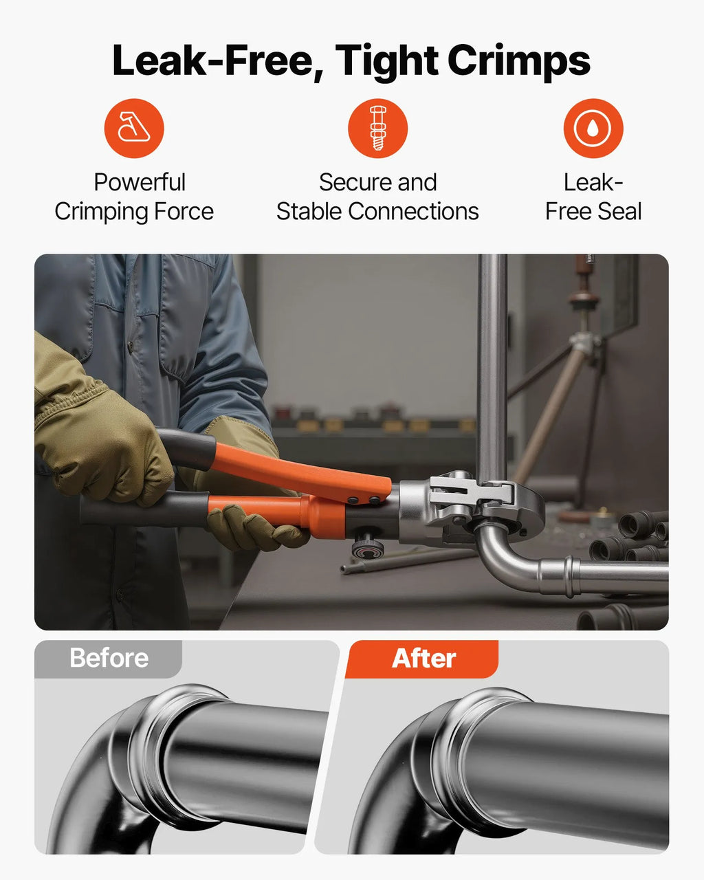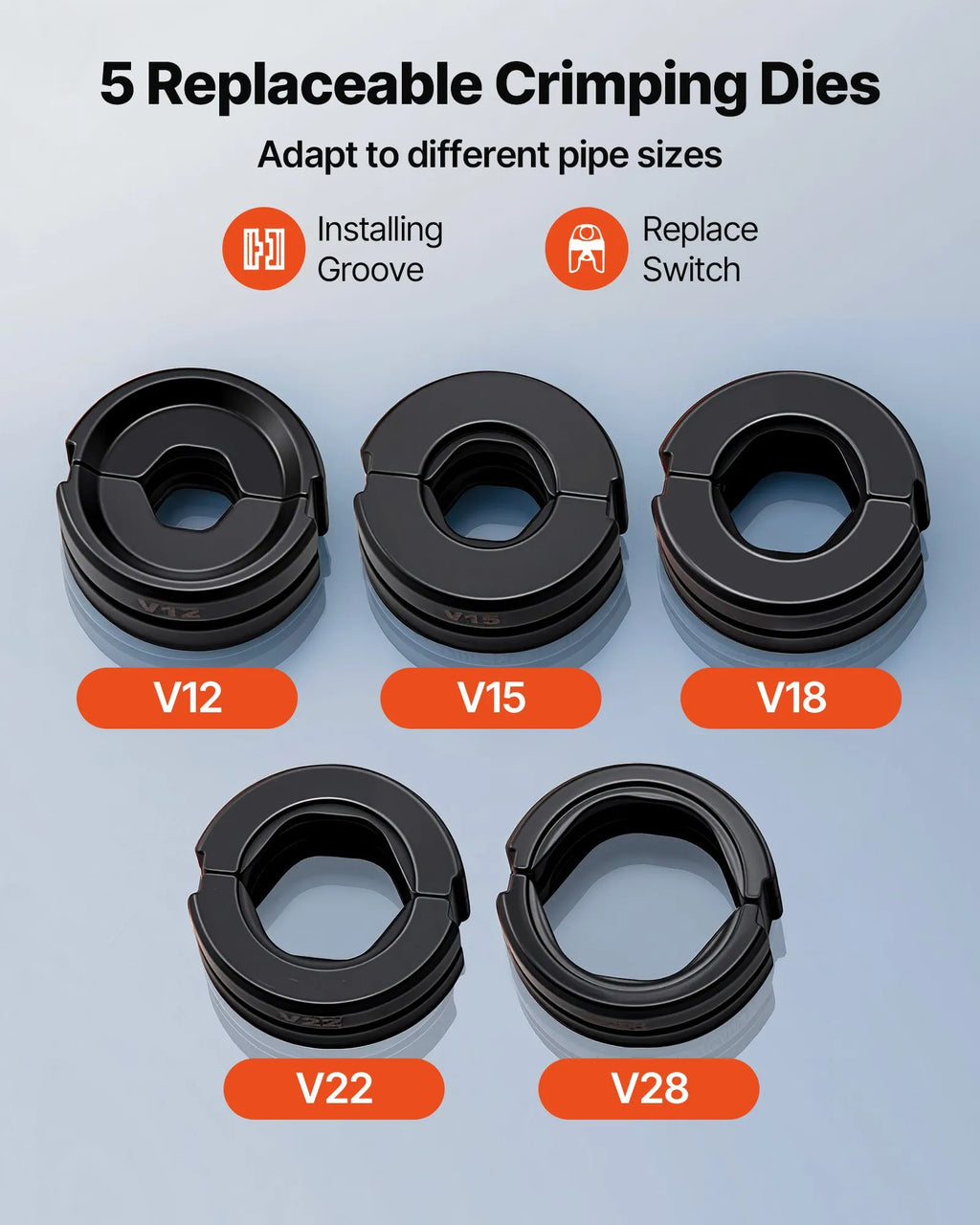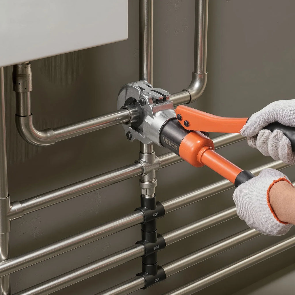 VEVOR hidrauliskais cauruļu presēšanas instruments nerūsējošā tērauda cauruļu veidgabaliem, presēšanas žokļi V12/V15/V18/V22/V28, ar pārnēsāšanas koferi, santehnikas montāžai un remontam