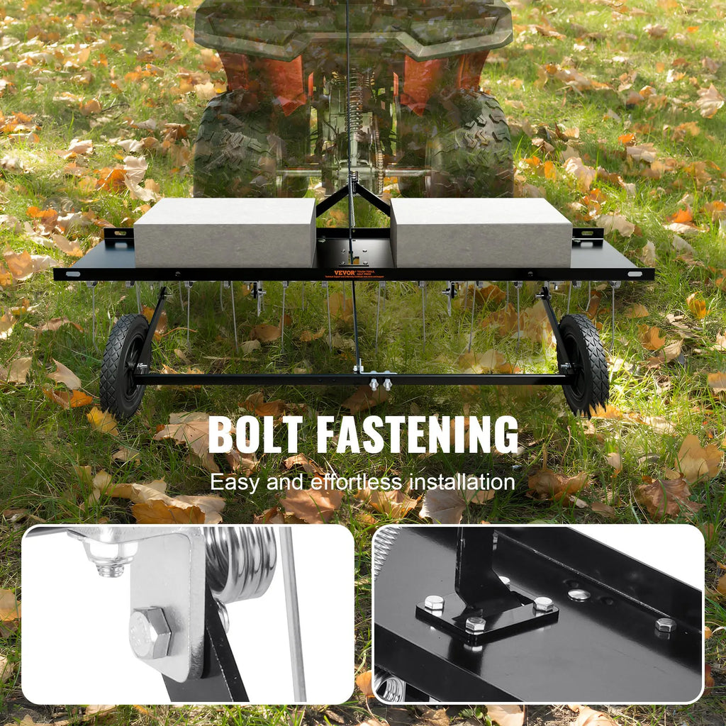 VEVOR piekabināmais skarifikators ir ērts risinājums mājsaimniecībām. Tas ir viegli lietojams un kompakti uzglabājams. Ierīci var vilkt ar zāliena pļāvēju vai ATV, padarot to pieejamu ikvienam mājas īpašniekam. Skarifikators ir efektīvs retākai, bet kvalitatīvai zāliena kopšanai. Tas ir lieliska izvēle tiem, kuri vēlas uzticamu risinājumu bez lielām izmaksām.