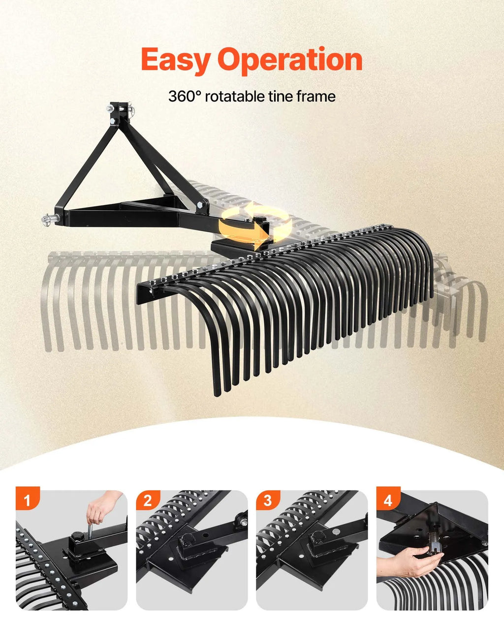 VEVOR piekabināms zāliena skarifikators, 1525 mm darba platums, ar 32 tērauda zariem, trīspunktu zāliena skarifikatora grābeklis ar stiprinājumiem traktoram, ainavu grābeklis dārzam, saimniecībai un zālienam