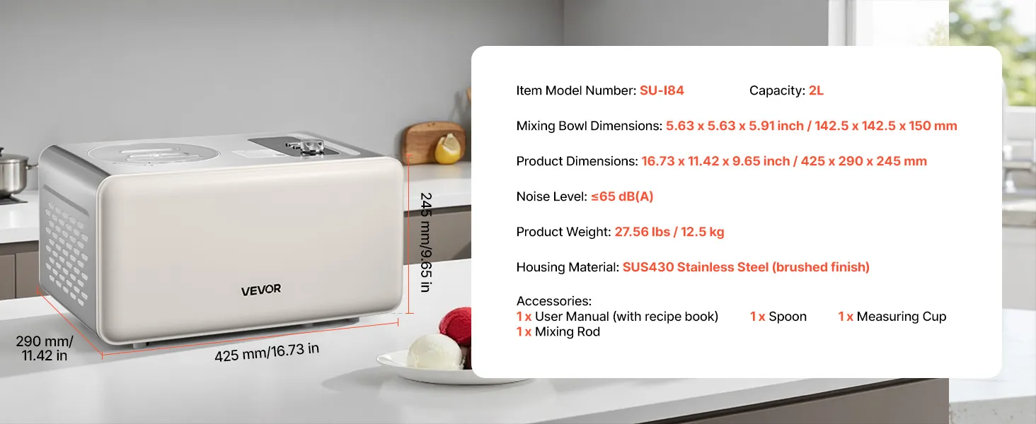 Liela ietilpība un jaudīgs motors: Ar 2 litru ietilpību un jaudīgu 150 W motoru šī kompresora saldējuma mašīna viegli pagatavo pietiekami daudz saldējuma 1–3 cilvēkiem, nodrošinot ātru un efektīvu darbību.