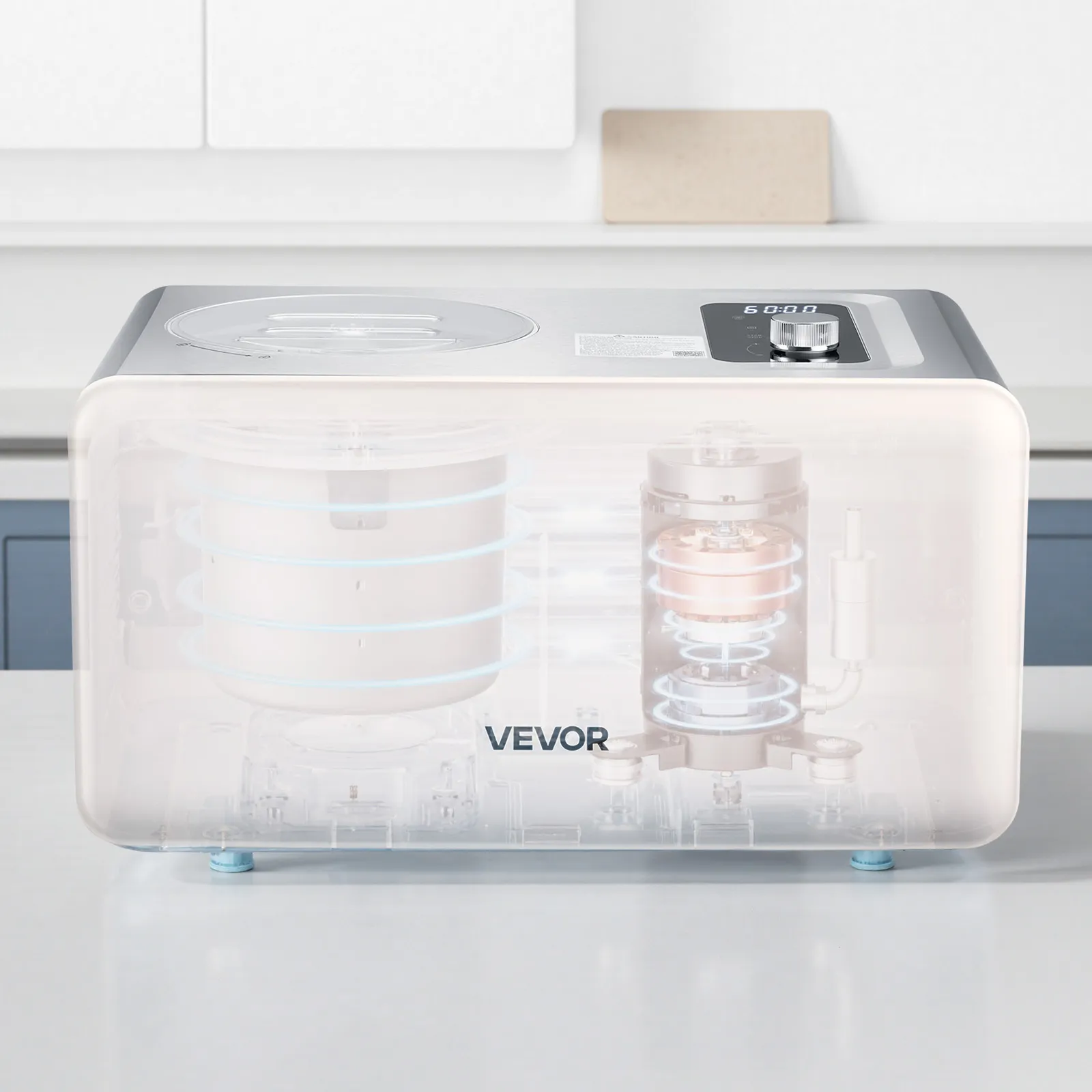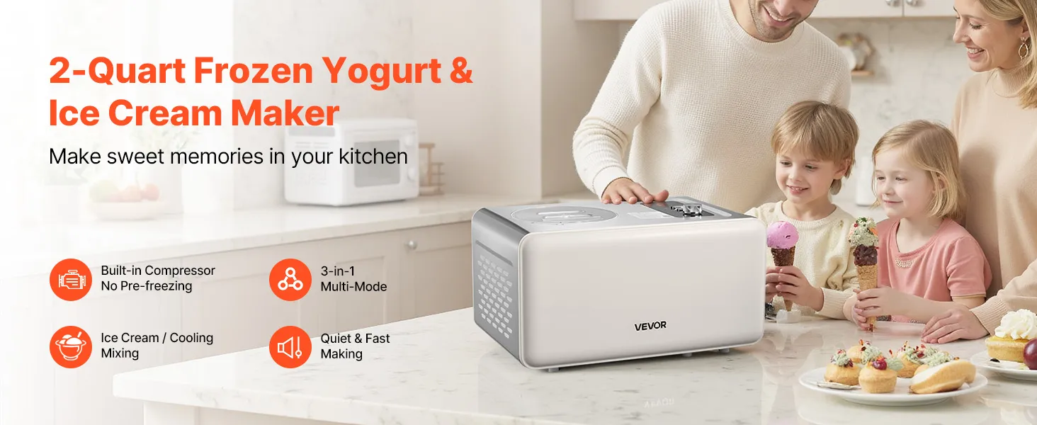 Iebūvēts kompresors: Jaudīgā saldējuma mašīna ar iebūvētu kompresoru pagatavo saldējumu tikai 50–60 minūtēs. Nav nepieciešams iepriekš sasaldēt bļodu – vienkārši pievienojiet sastāvdaļas un vērojiet, kā tās ātri pārvēršas gardā mājas saldējumā.