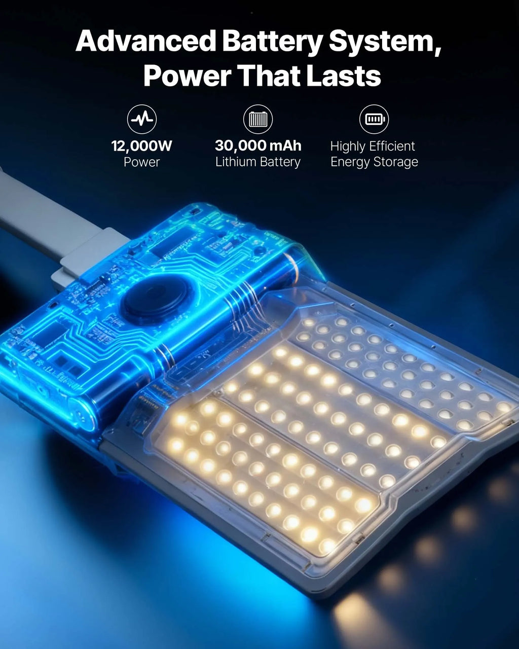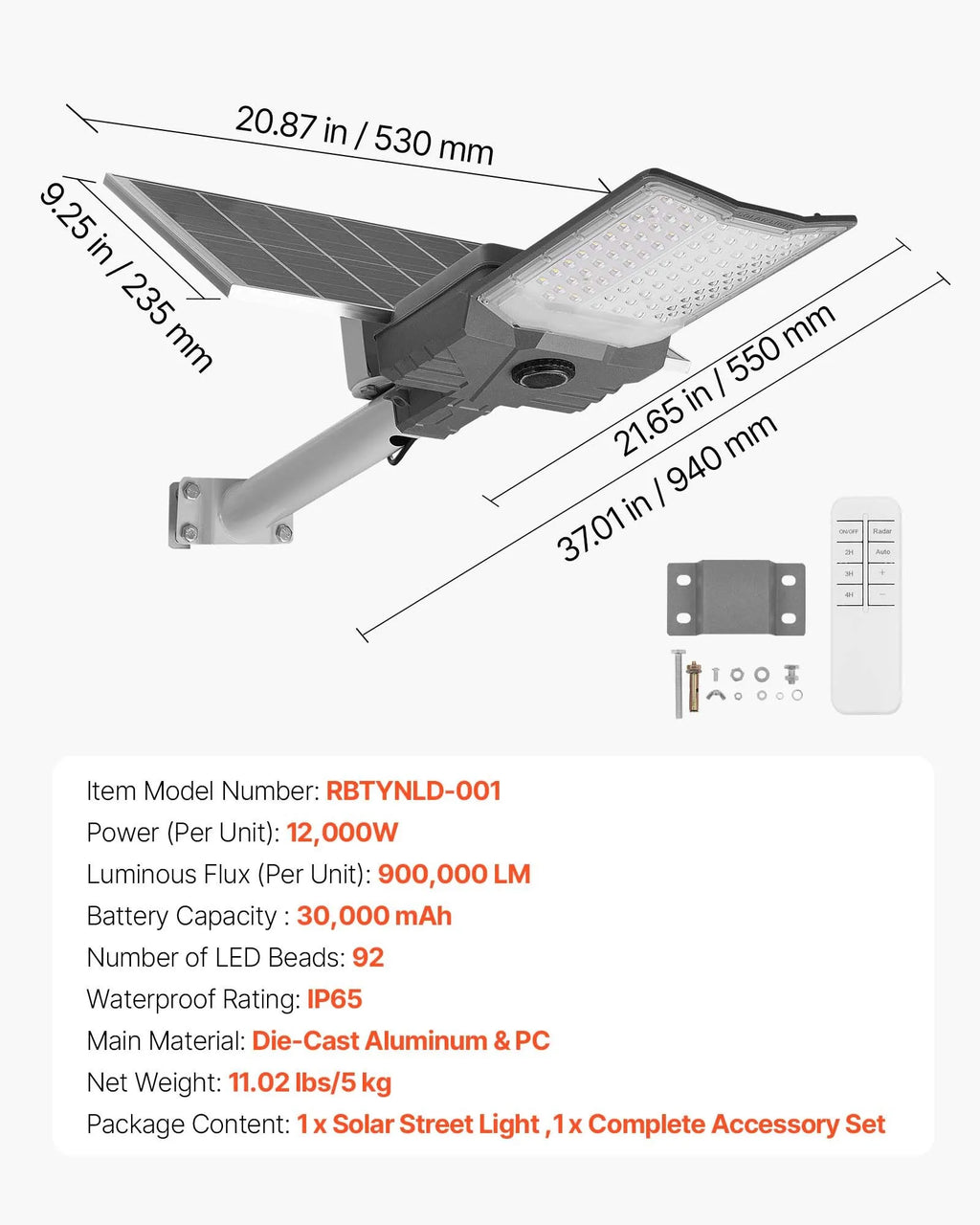 VEVOR 12 000 W saules ielas lampa āra apstākļiem, 900 000 lm, augstas jaudas LED prožektors autostāvvietām ar krēslas–rītausmas režīmu, dalītā tipa drošības apgaismojums ar RF tālvadību, IP65, piebraucamajam ceļam un pagalmam