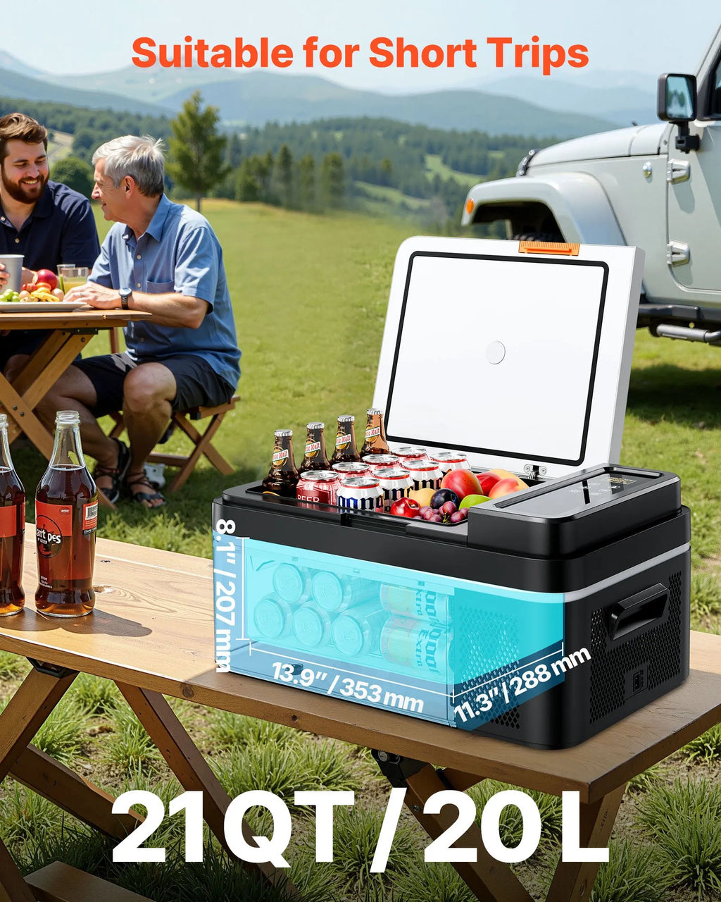VEVOR automašīnas ledusskapis–saldētava, kompresora dzesētājs DC 12/24 V un AC 100–240 V, temperatūras diapazons −20 °C līdz +20 °C, ar lietotnes vadību, 20 l ietilpība, 60 W pārnēsājams saldētājs kemperiem, kempingam, laivām un makšķerēšanai