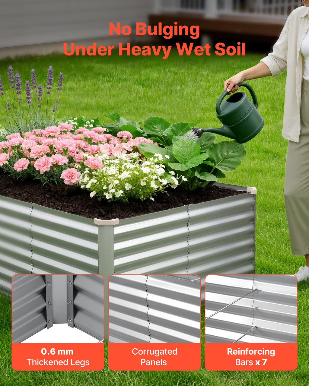 Īpaši plaša audzēšanas zona: Paaugstinātā dārza dobe ar 2400 × 1200 × 620 mm stādīšanas laukumu nodrošina lielu augsnes tilpumu un dziļumu. Plaša vieta sakņu attīstībai gan vertikāli, gan horizontāli veicina veselīgu dārzeņu un ziedu augšanu.