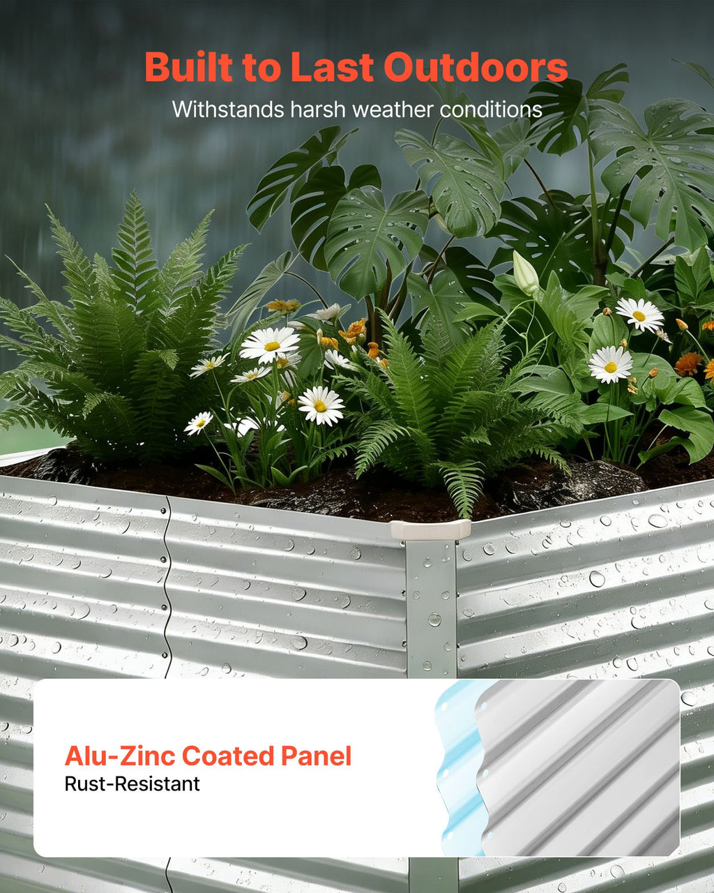 Izturīga pret rūsu un ilgmūžīga: Izgatavota no izturīgiem alumīnija-cinka pārklājuma paneļiem, šī āra dārza dobe ir noturīga pret rūsu, koroziju un deformāciju. Paredzēta ilgstošai lietošanai ārpus telpām, saglabājot izturību un formu sezonu pēc sezonas