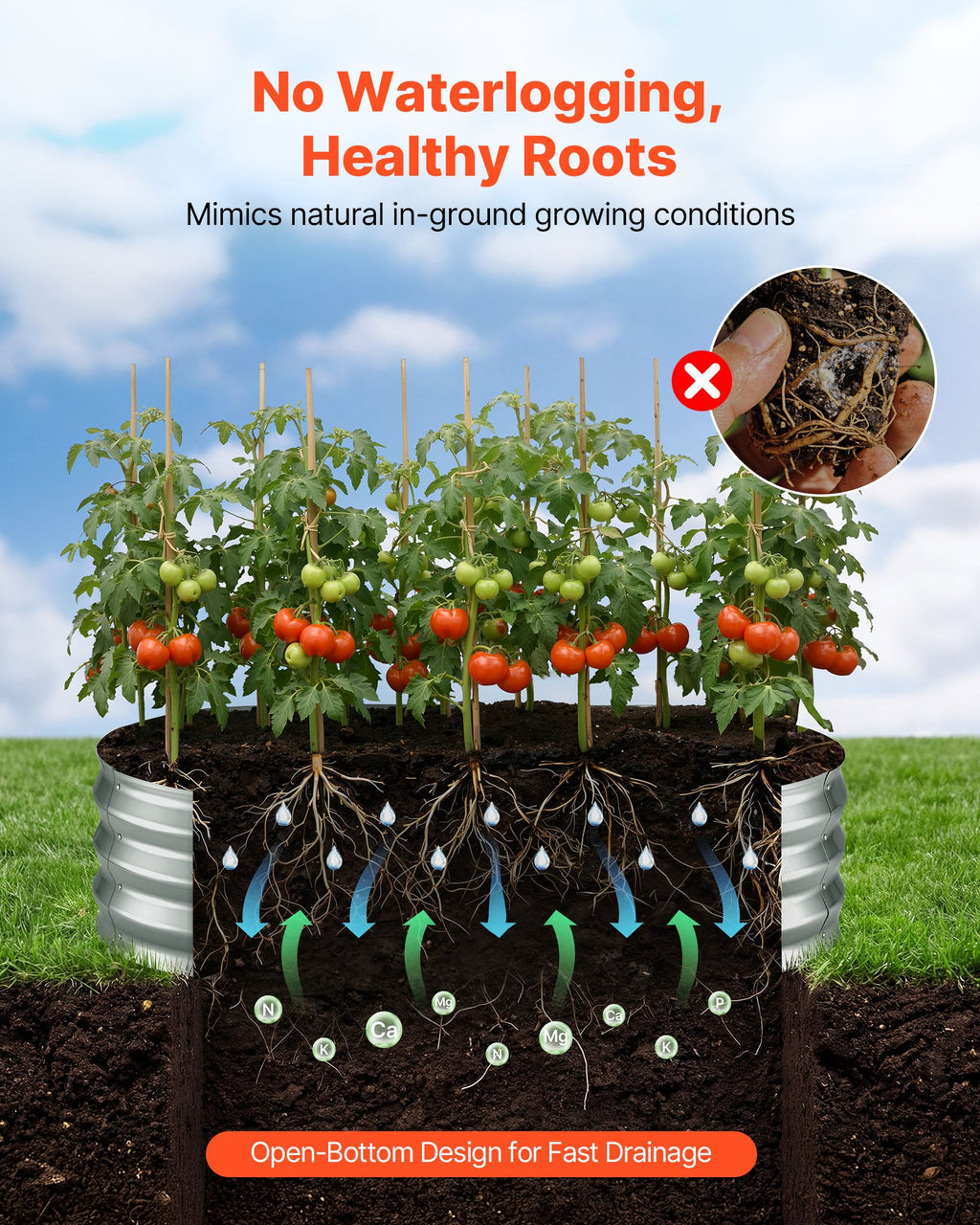 Pastiprināta un stabila konstrukcija: Gofrētie paneļi vienmērīgi sadala augsnes spiedienu. Pastiprinājuma stieņi palīdz novērst izspiešanos vai deformāciju pat tad, kad dobe ir pilnībā piepildīta ar mitru augsni ilgstošai audzēšanai.