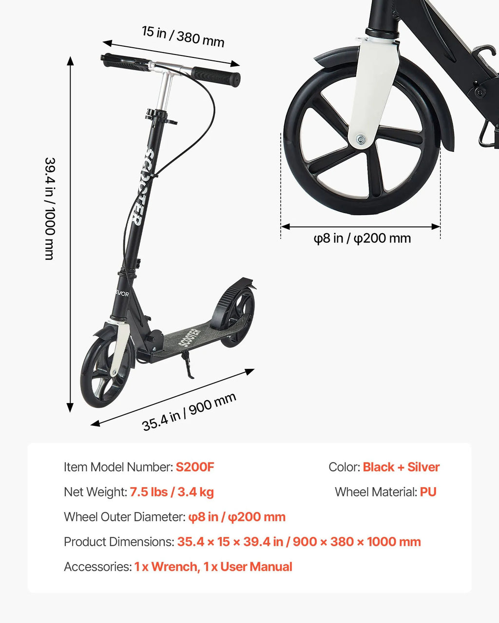 【Droša braukšana un salokāms dizains】– Plata pretslīdes platforma nodrošina stabilitāti, bet rokas bremze ļauj viegli un kontrolēti apstāties. Skrejritenis ātri salokāms un ir viegli pārnēsājams vai uzglabājams automašīnas bagāžniekā.