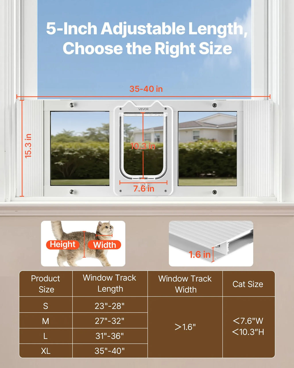 Izmēriet pirms iegādes: Pirms iegādes izmēriet savu mājdzīvnieku un loga rāmi. Šīm kaķu durtiņām logam ir 127 mm regulējams garums, kas nodrošina ērtu lietošanu kaķim un savietojamību ar logu.