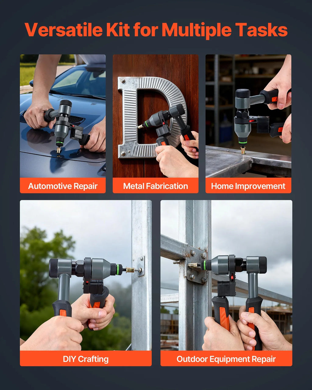 Daudzmateriālu pielietojums: Šis kniedējamo uzgriežņu instrumenta komplekts nodrošina stabilu veiktspēju alumīnijam, tēraudam, nerūsējošajam tēraudam un citiem materiāliem. Ideāli piemērots metāla remontam, instrumentiem, mēbelēm, durvīm un dažādiem DIY projektiem