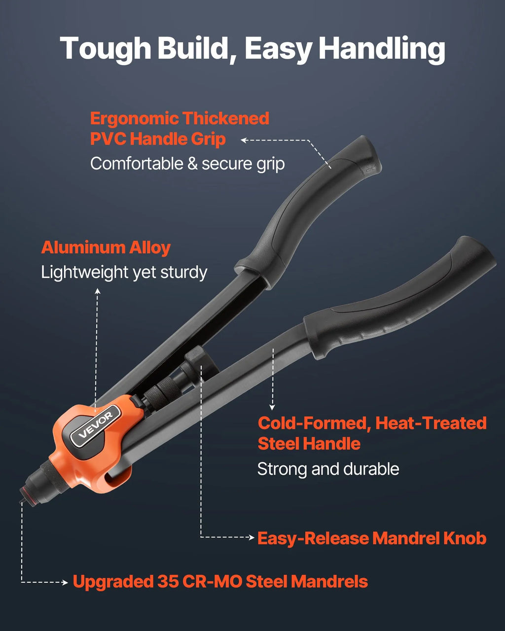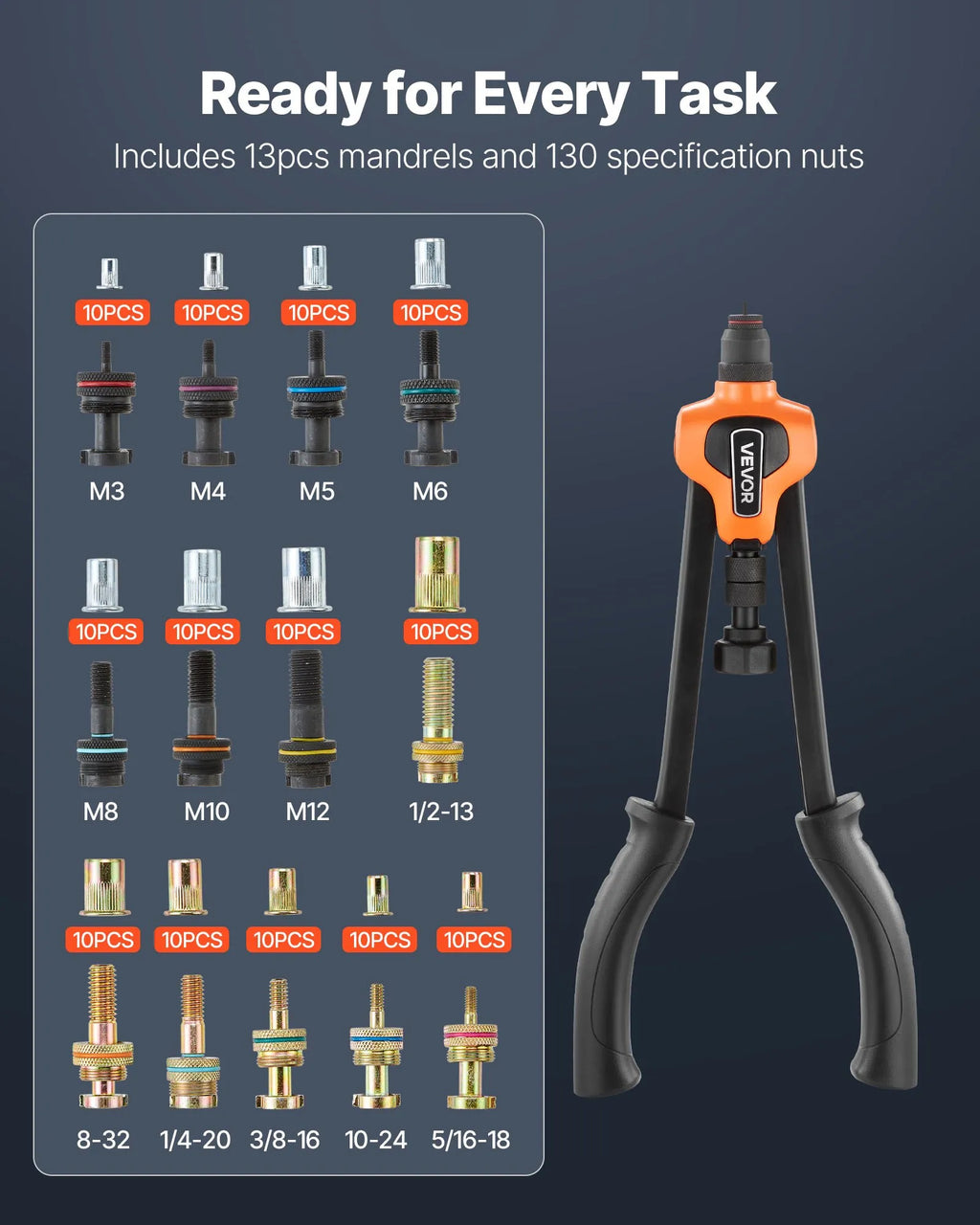 VEVOR Kniežu uzgriežņu knaibles 420 mm ar 13 mandrelēm un 130 kniežu uzgriežņiem (M3–M12, 8-32 līdz 1/2-13 UNC), ar pārnēsājamu koferi