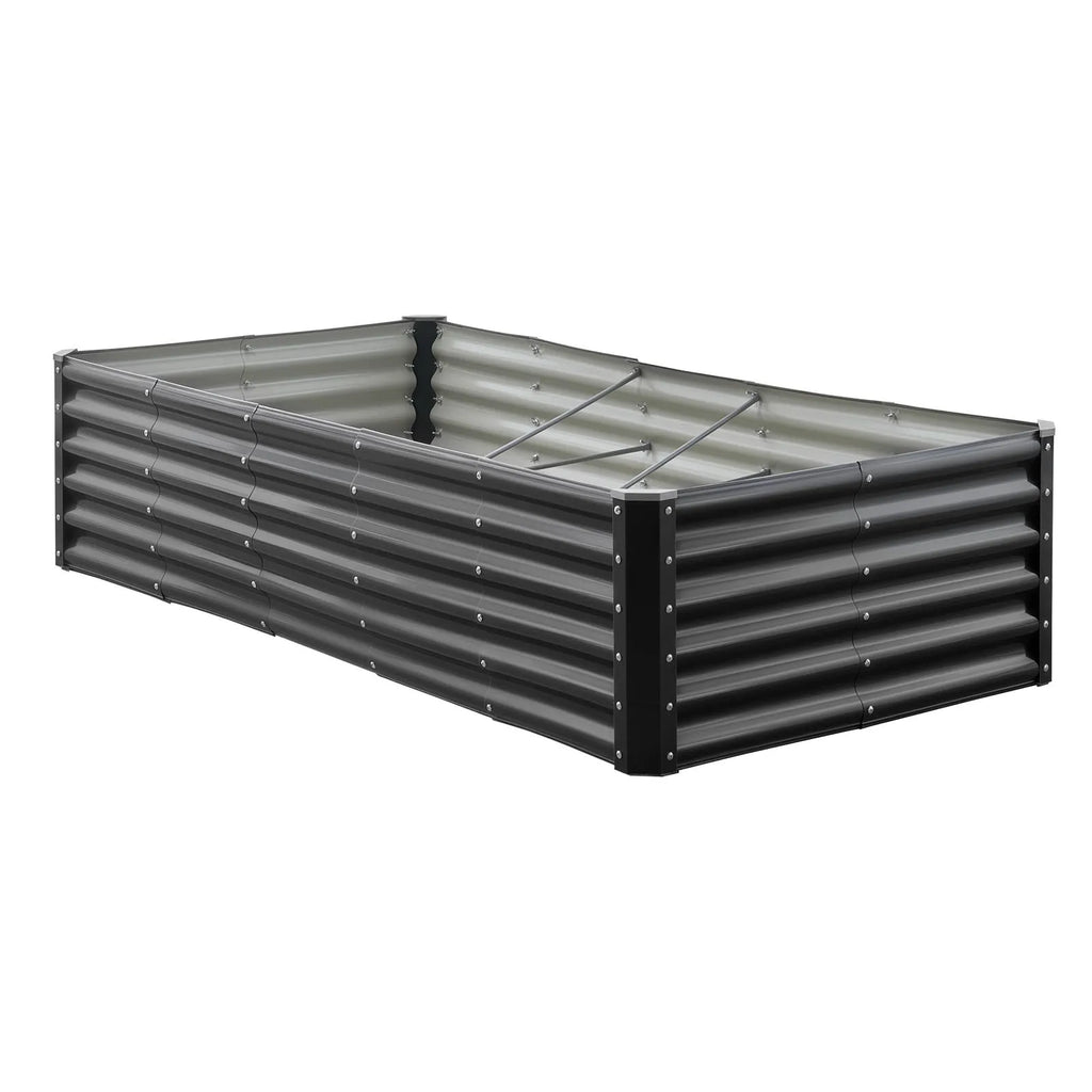 VEVOR metāla paaugstinātā dārza dobe 1,8 × 0,9 × 0,4 m, cinkota āra stādīšanas kaste ar atvērtu apakšu, liela stādīšanas dobe dārzeņu, ziedu, garšaugu un sukulentu audzēšanai, tumši pelēka