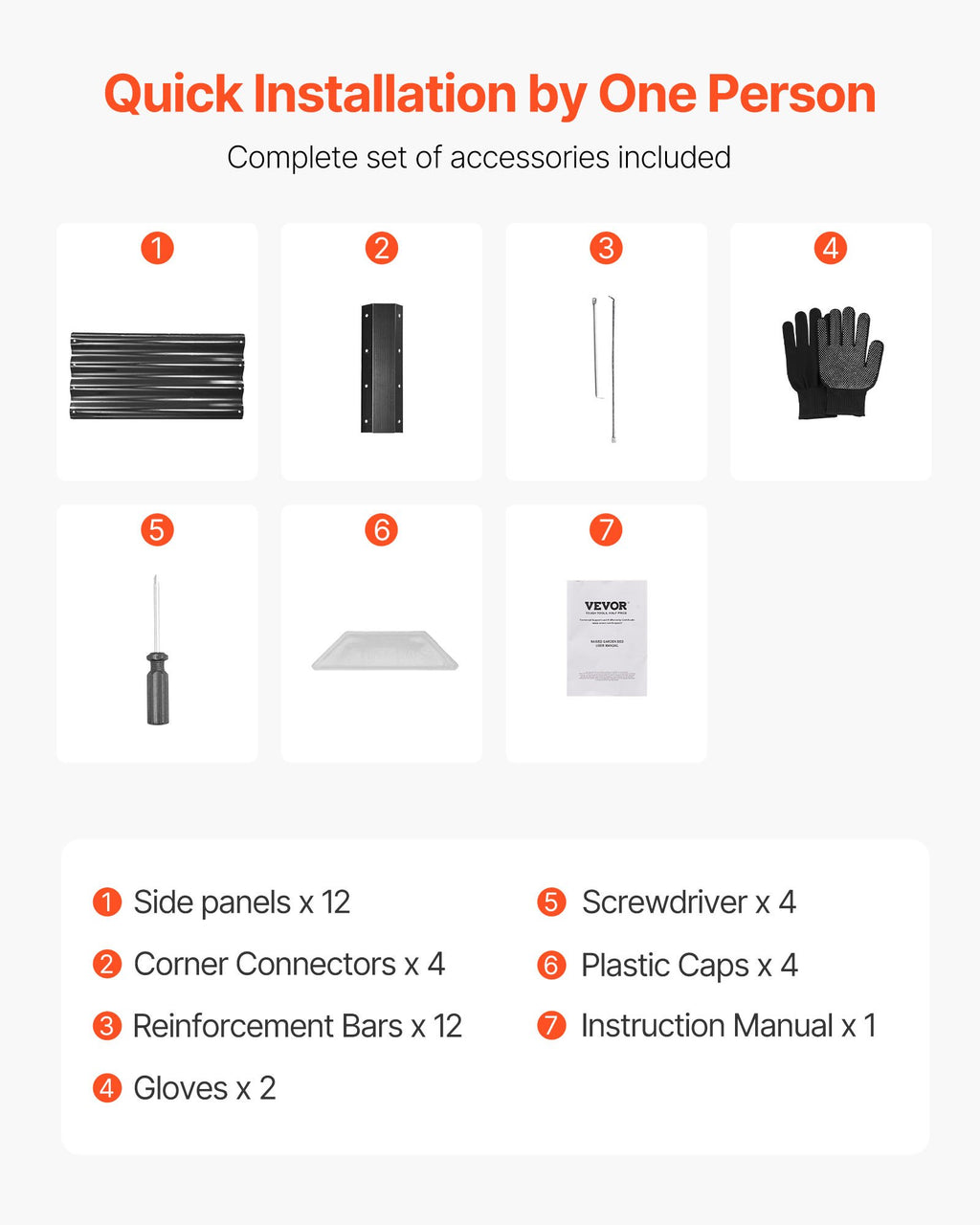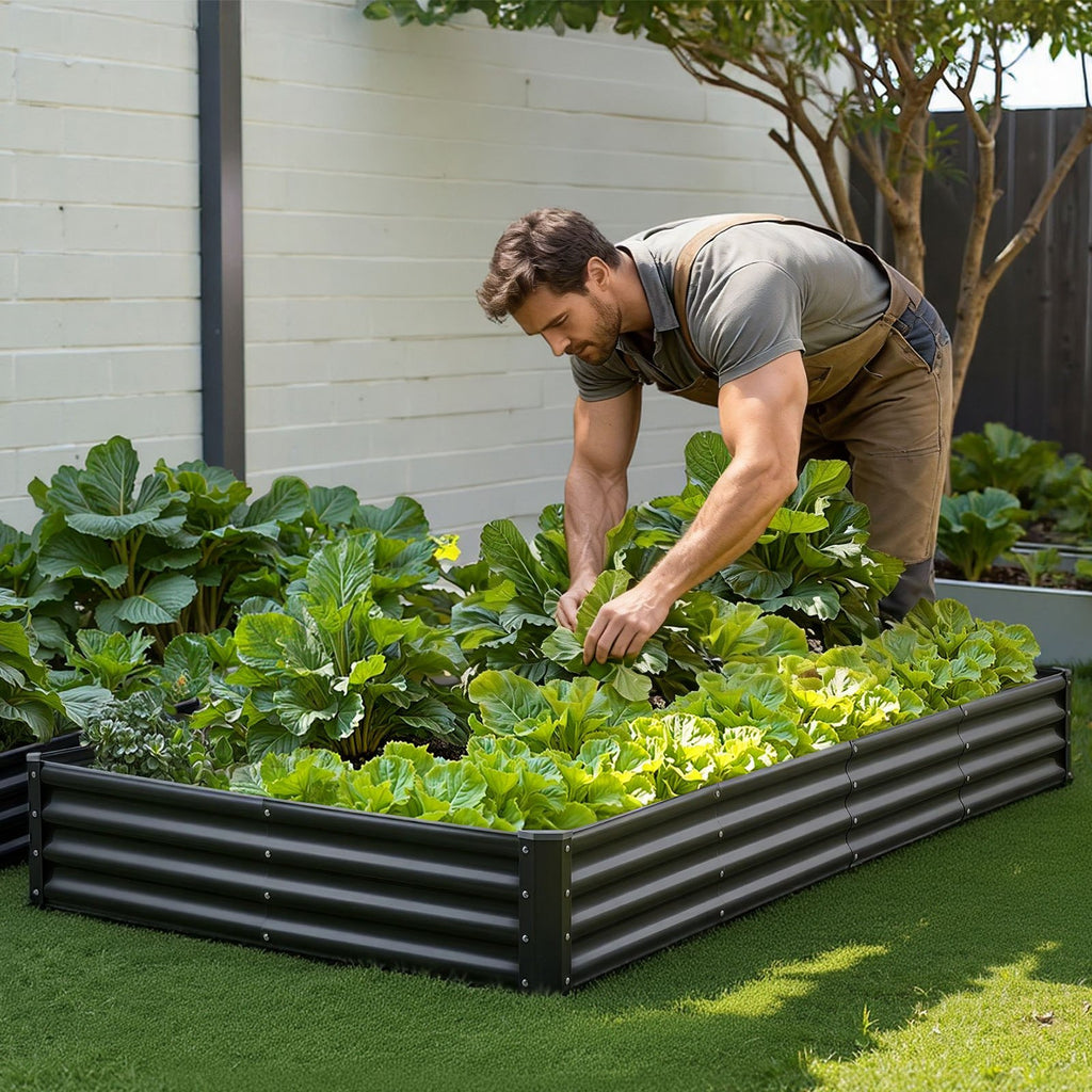 VEVOR metāla paaugstinātā dārza dobe 2,4 × 1,2 × 0,3 m, āra Galvalume stādīšanas kaste ar atvērtu apakšu, liela dobe dārzeņu, ziedu, garšaugu un sukulentu audzēšanai, tumši pelēka