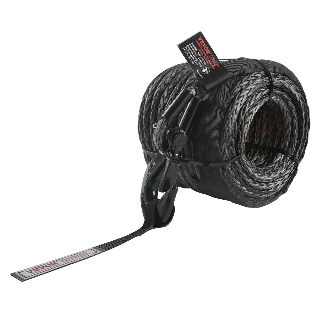 VEVOR sintētiskā vinčas trose, 9.5 mm × 30.48 m, 12 020 kg celtspēja, sintētiskais vinčas troses kabelis ar aizsarguzmavu + kalta vinčas āķi + vilkšanas siksnu, universāli piemērota SUV, lieliem bezceļu auto un kravas automobiļiem