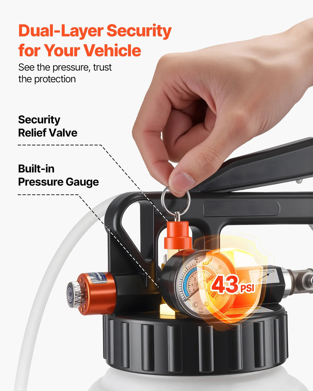 Aprīkots ar spiediena manometru reāllaika uzraudzībai un manuālu drošības atbrīvošanas vārstu liekā spiediena ātrai samazināšanai, aizsargājot instrumentu un transmisijas sistēmu.