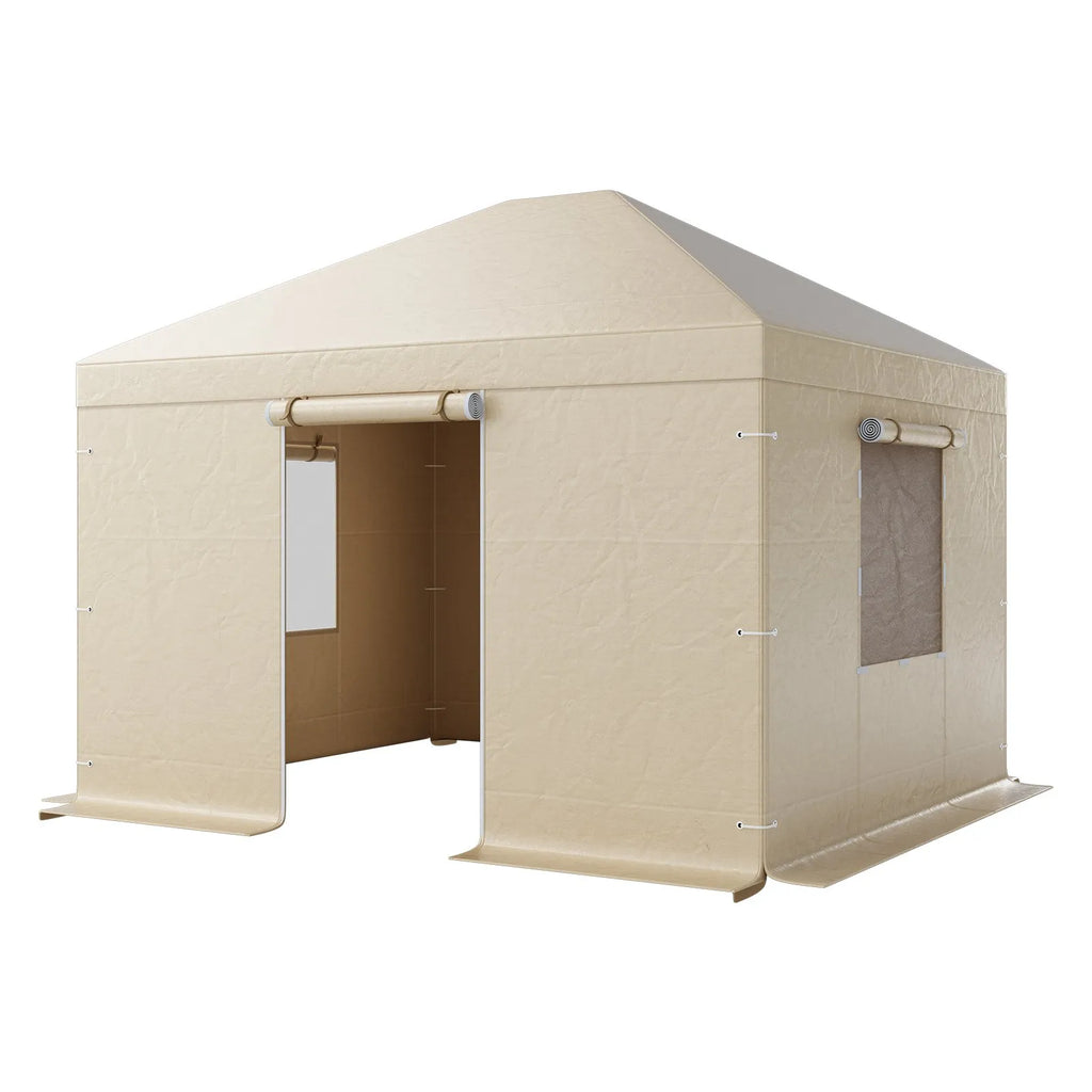 Ziemas paviljona pārsegs, piemērots 3,07 × 3,67 m cietā jumta paviljoniem, ar sienām un logiem, augstas blīvuma PE materiāls