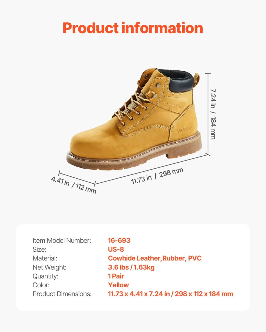 41_VEVOR darba zābaki ar metāla purngalu, izmērs ES 41, ūdensizturīgi vīriešu darba apavi ar neslīdošu zoli, viegli un elpojoši ar gumijas zoli, piemēroti industriālajam un būvniecības darbam, brūni–dzelteni