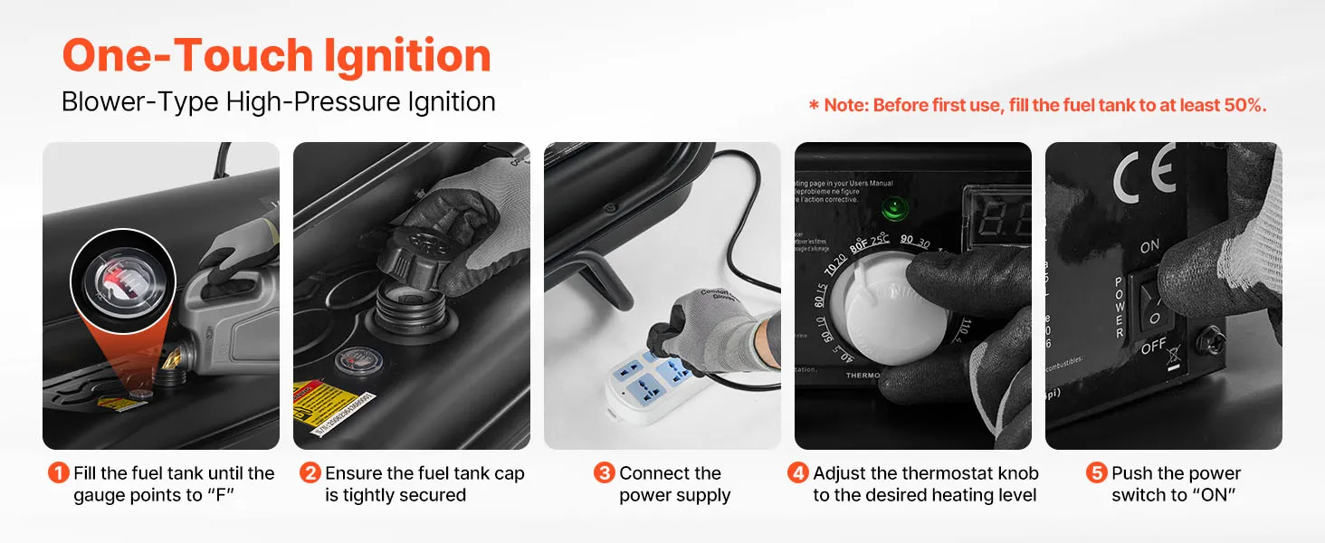 Šim starojuma tipa sildītājam ir dubultie degvielas filtri, kas nodrošina tīrāku degšanas procesu. Saderīgs gan ar petroleju, gan dīzeļdegvielu, tas samazina dūmus, nepatīkamu smaku un diskomfortu lietošanas laikā.