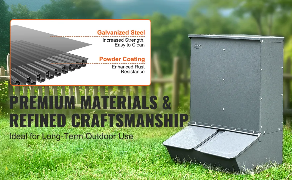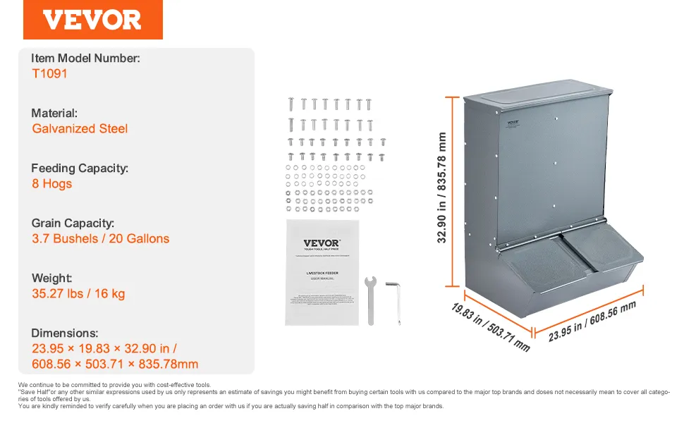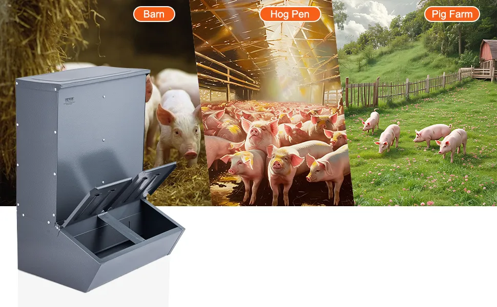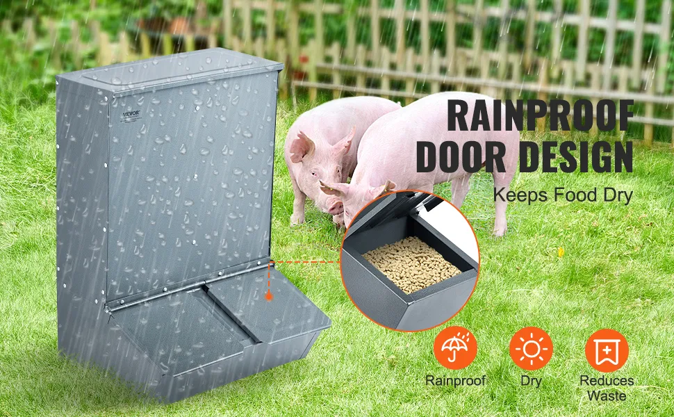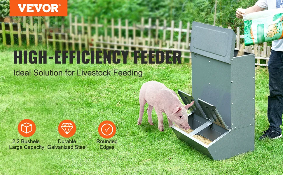 VEVOR cūku barotava, 130 L ietilpība, dubultdurvju tērauda barotava sivēniem, daudzfunkcionāra āra fermu sile līdz 8 cūkām