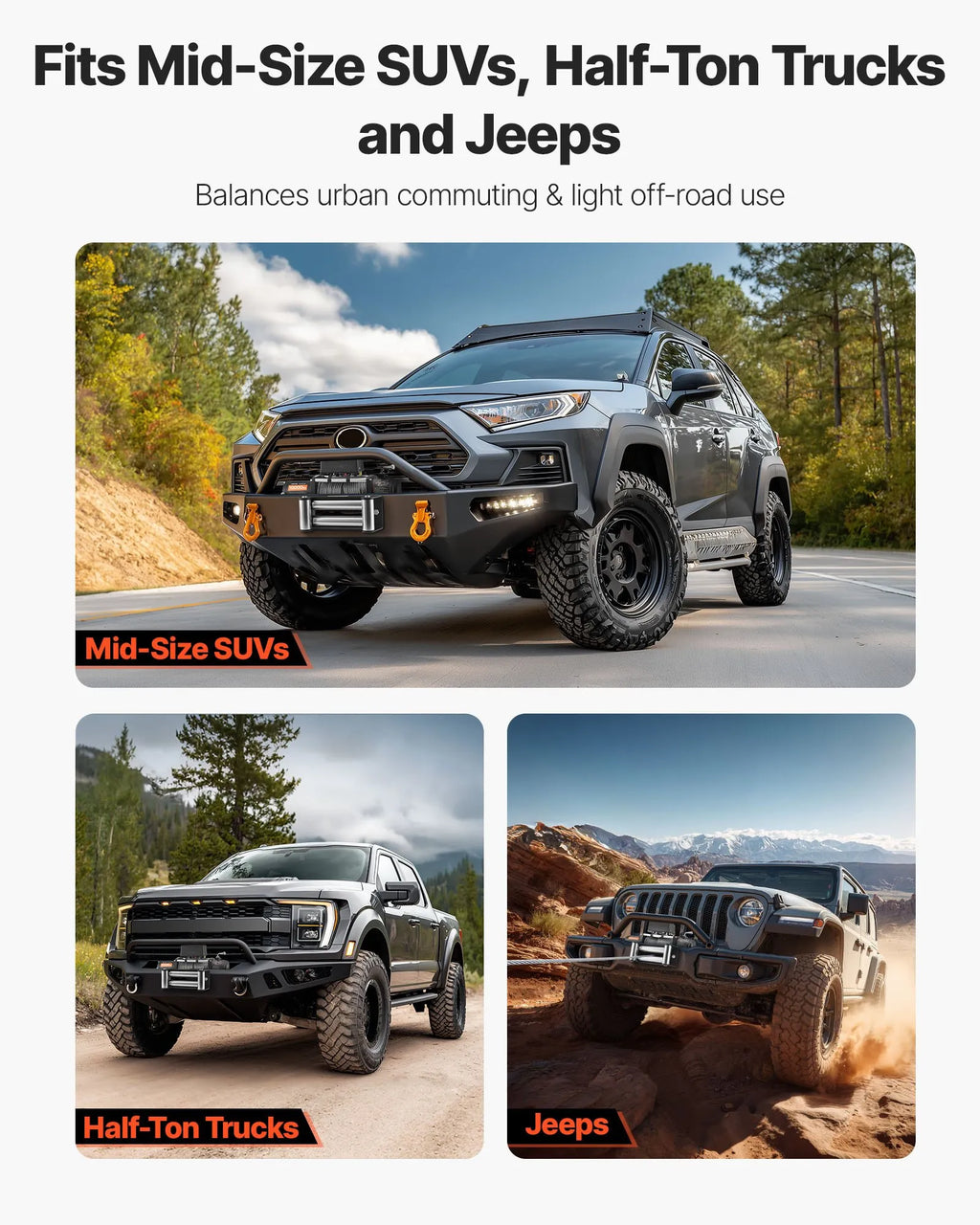 Plaša saderība: Universālais montāžas risinājums ir piemērots lielākajai daļai SUV, pikapu un Jeep automašīnu. Glābšanas vinčas komplektā ietilpst virzošais rullis, āķis un strāvas kabeļi — gatavs ātrai uzstādīšanai un lietošanai