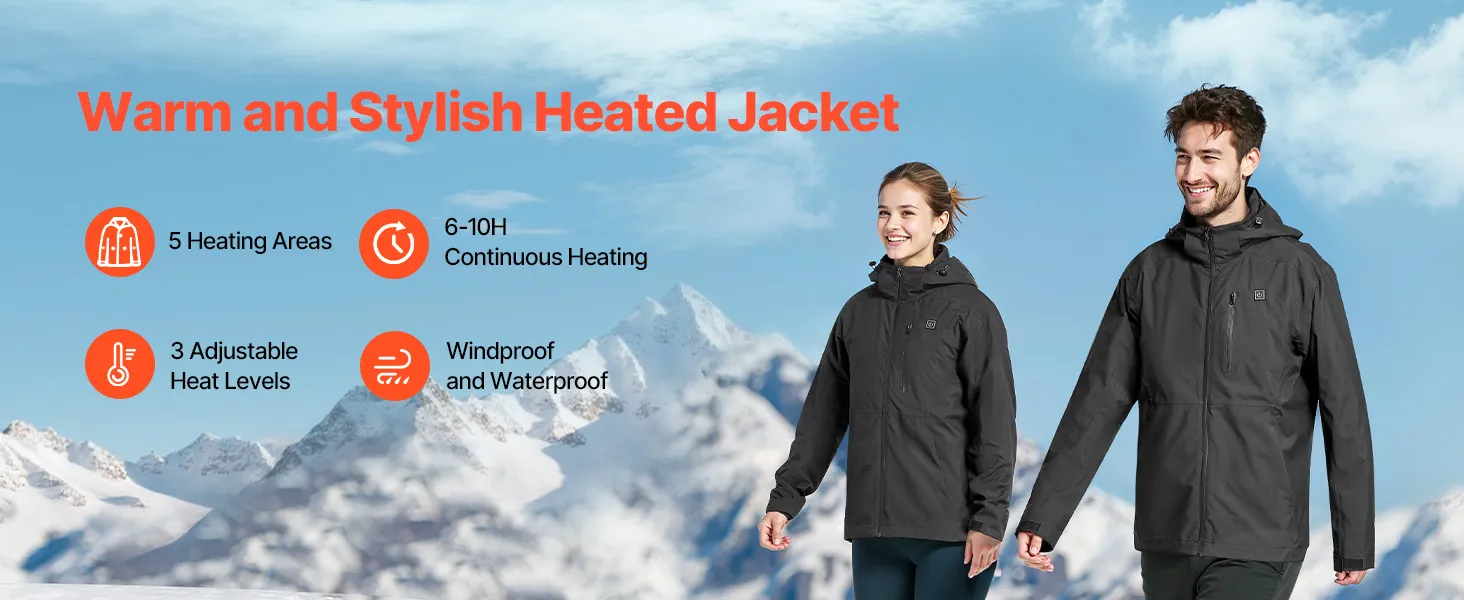 L_VEVOR apsildāmā jaka sievietēm ar 7,4 V akumulatoru, softshell elektriski apsildāma virsjaka, vējaizturīga un ūdensizturīga viegla virsjaka ar 5 apsildes zonām un 3 siltuma iestatījumiem, mazgājama veļasmašīnā
