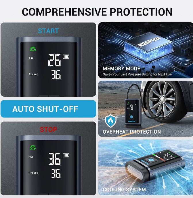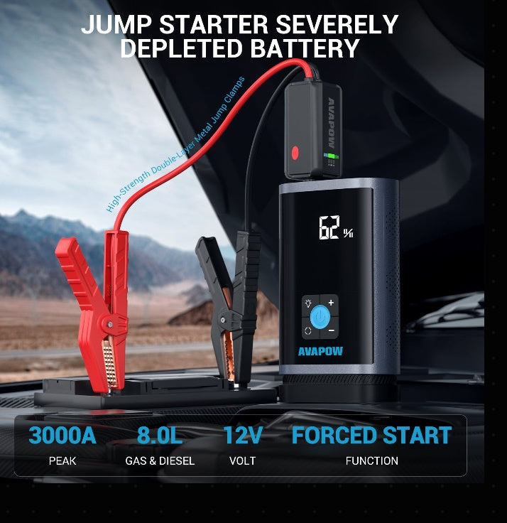 Palaišanas ierīce un gaisa kompresors JP3, 3000A, 16000 mAh, līdz 8,0 L benzīna / 4,5 L dīzeļdzinējiem, 150 PSI, USB-C PD 30 W, LED lukturis, komplektā uzgaļi
