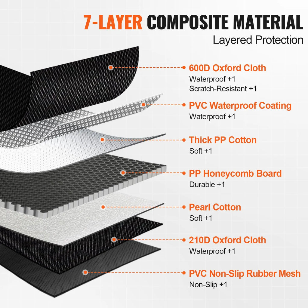 Augstākās kvalitātes daudzslāņu aizsardzība: izgatavots no 7 slāņiem, tostarp ūdensizturīga un skrāpējumnoturīga auduma, šis suņu auto sēdekļa pārvalks aprīkots ar neslīdošu apakšdaļu, kas notur suni vietā un pagarina pārvalka kalpošanas laiku.