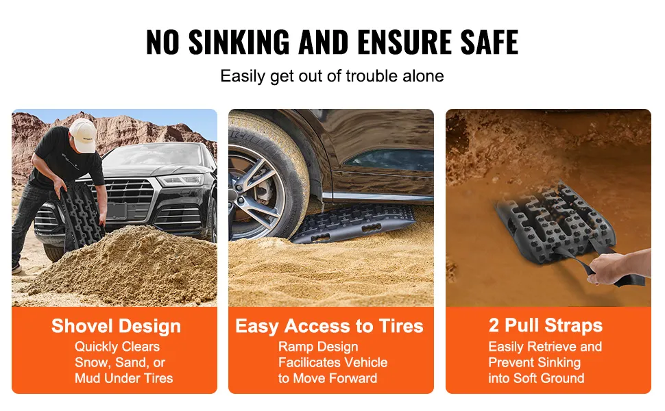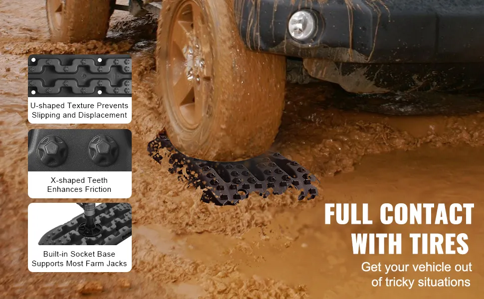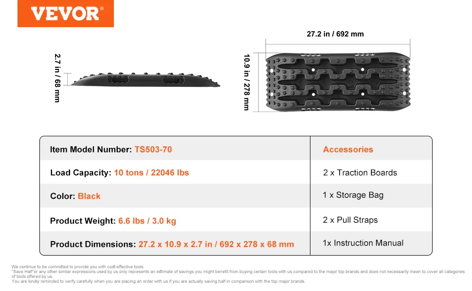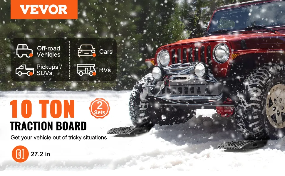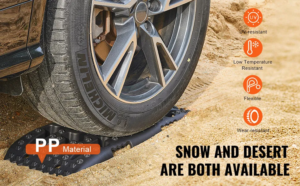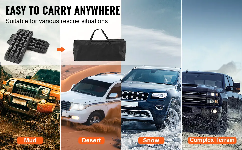 VEVOR 10 t PP saķeres dēļi bezceļu transportlīdzekļiem, īsie melnie riepu saķeres paklāji sniegam, smiltīm, dubļiem un irdenam reljefam, komplektā ar uzglabāšanas somu