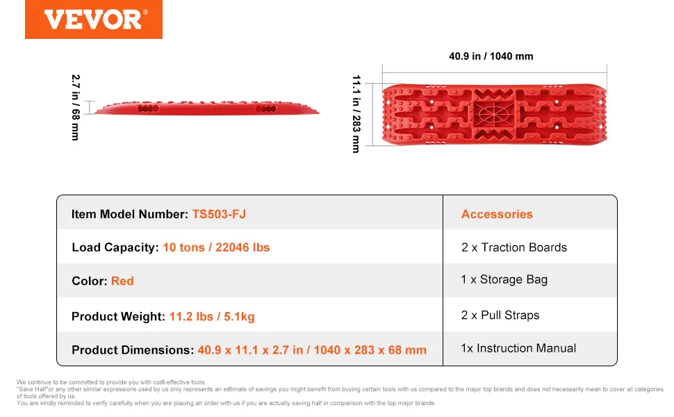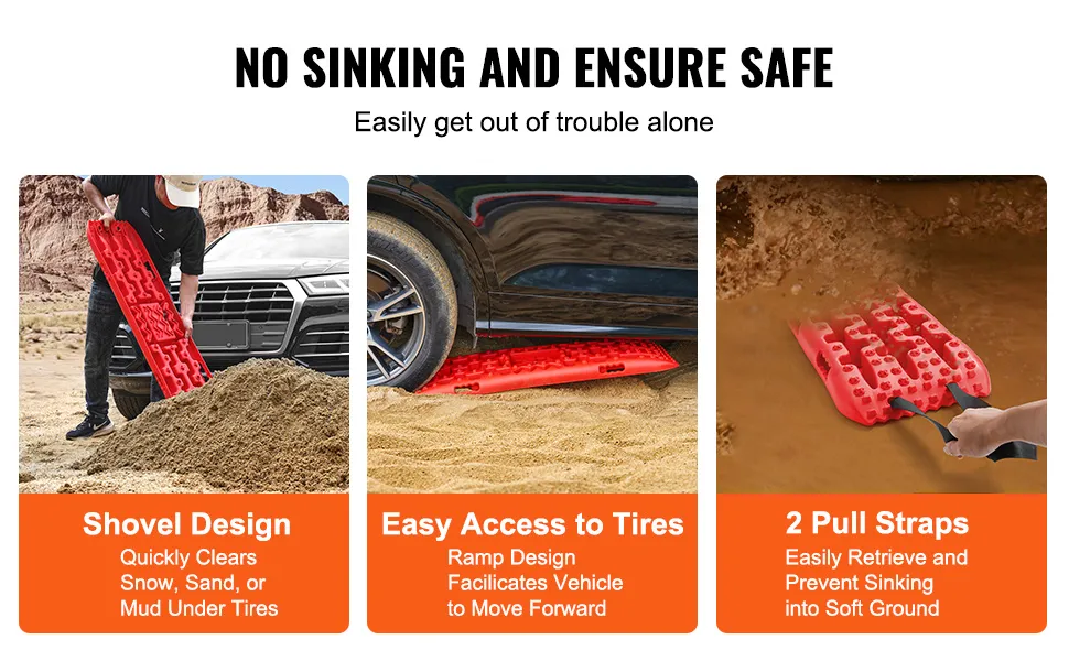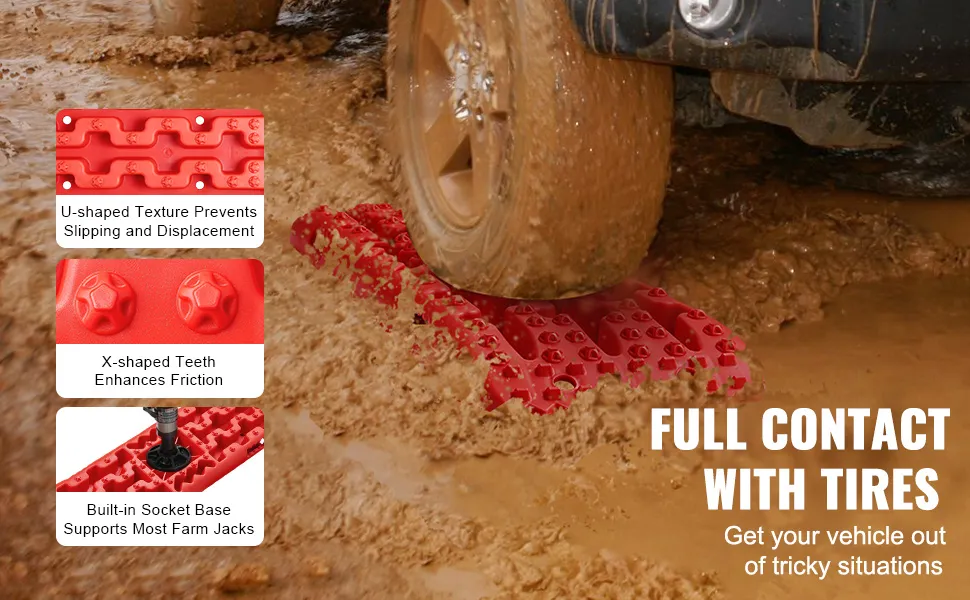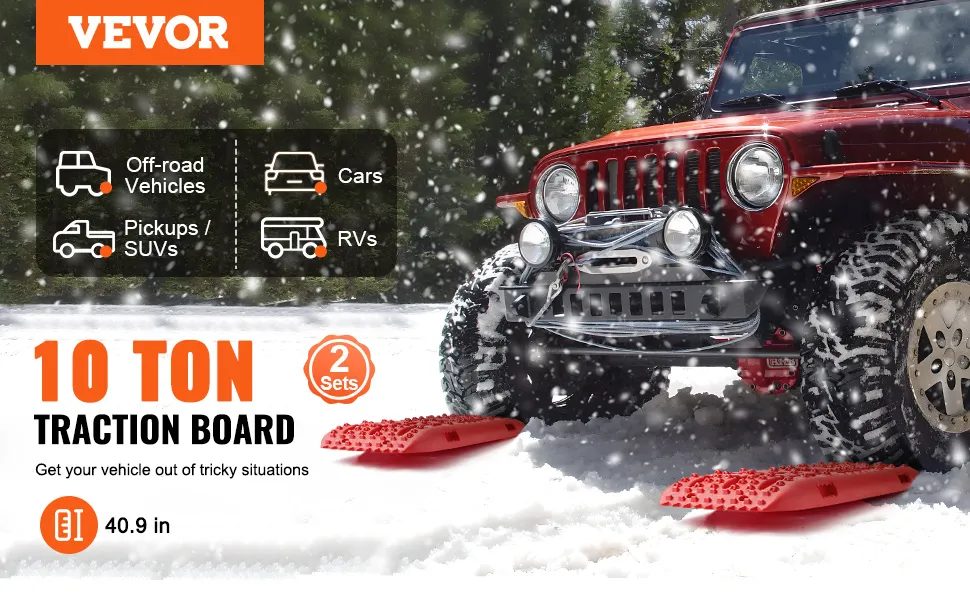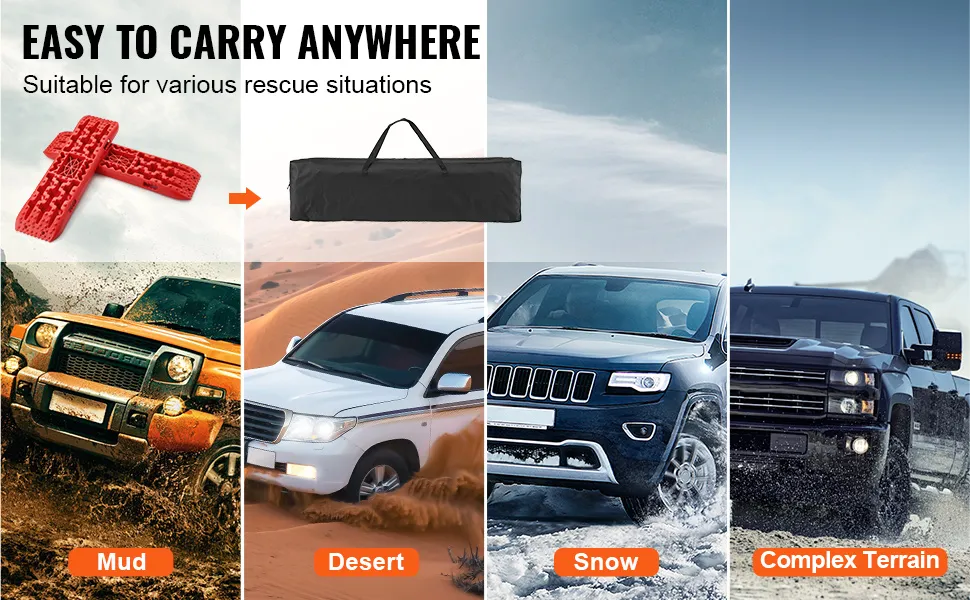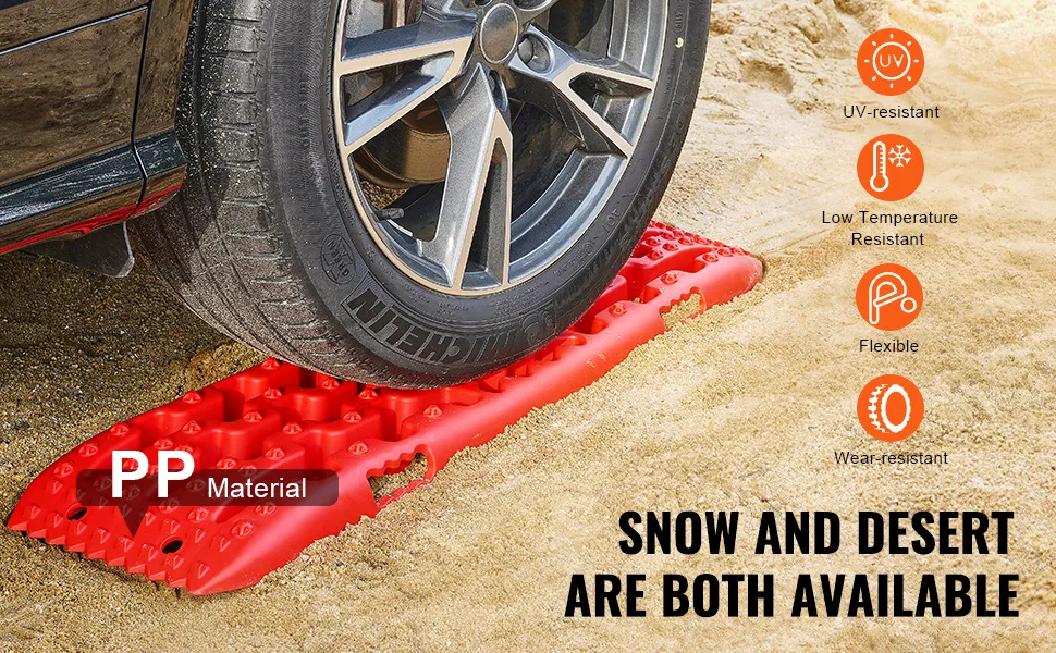 VEVOR 10 t vilkšanas dēļi no PP materiāla, atgūšanas dēļi apvidus auto, vieglajām automašīnām, pikapiem, SUV un kemperiem, pāris riepu saķeres paliktņu sniegam, smiltīm, dubļiem un irdenam reljefam, ar glabāšanas somu, garie, sarkani